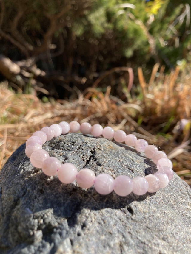 【真・実・愛・石】クンツァイト7.5㎜ 腕周り:16㎝ トラウマなど傷ついた経験があると次の一歩を踏み出せず、未来をネガティブにとらえがち。 傷ついたネガティブな感情や恋愛への不信感をなだめ、無意識なトラウマによる不安や恐れをやわらげ、心からの純粋な愛を表現できるようにしてくれるのです。踏み出す勇気をもたらし、純粋な気持ちを呼び覚まし幸せな道標へ貢献してくれるお石さんです^ ^ 恋愛の石としても真実の愛の石としても高名ですが、ネガティブを軽減する効果が特徴的にあります^ ^