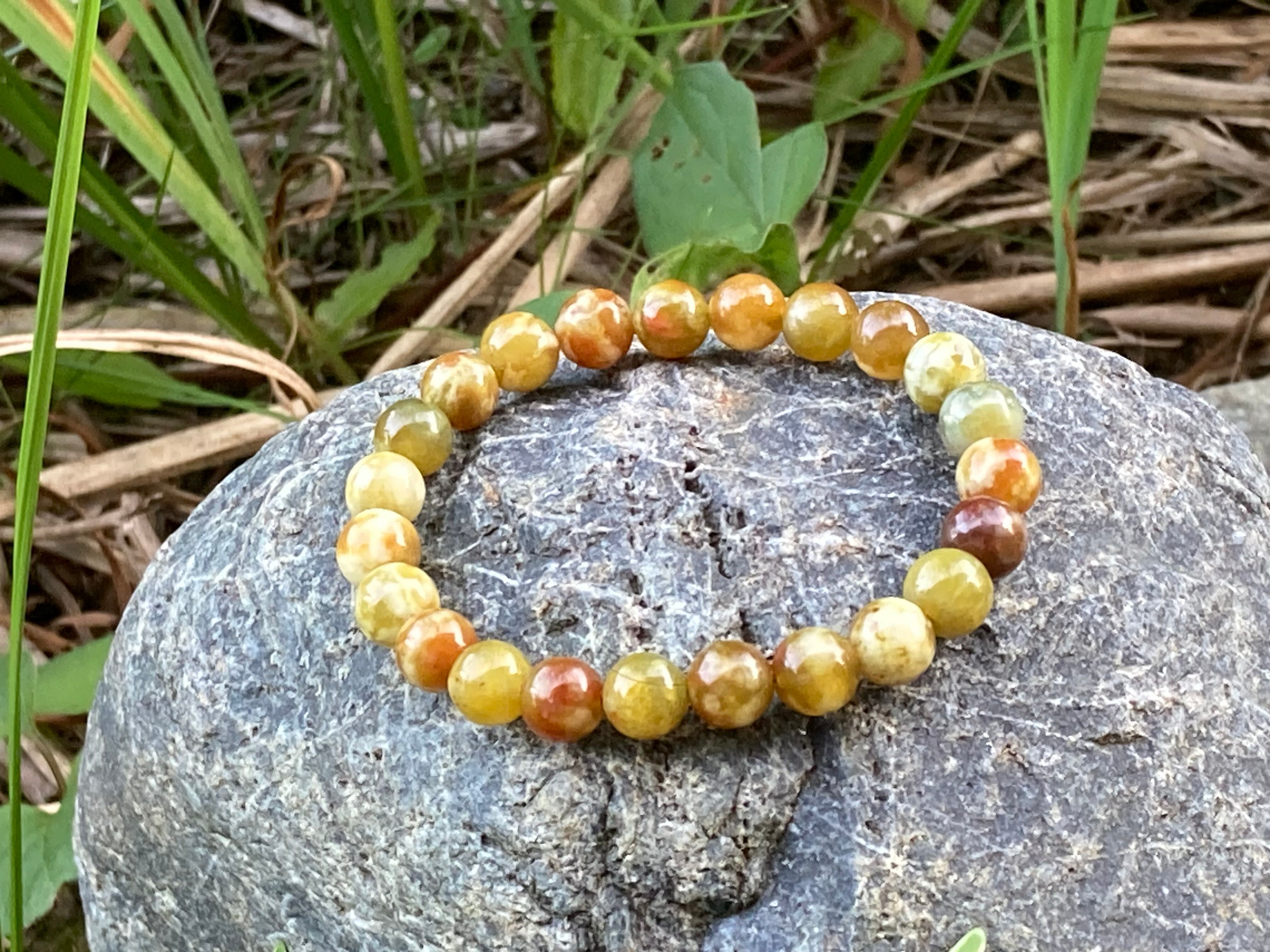 サーペンティンは、緑と白の蛇紋が一般的ですがこちらはオリーブグリーンとオレンジの自然発色が奏でるところに白の蛇紋様が入る綺麗なサーペンティンです。