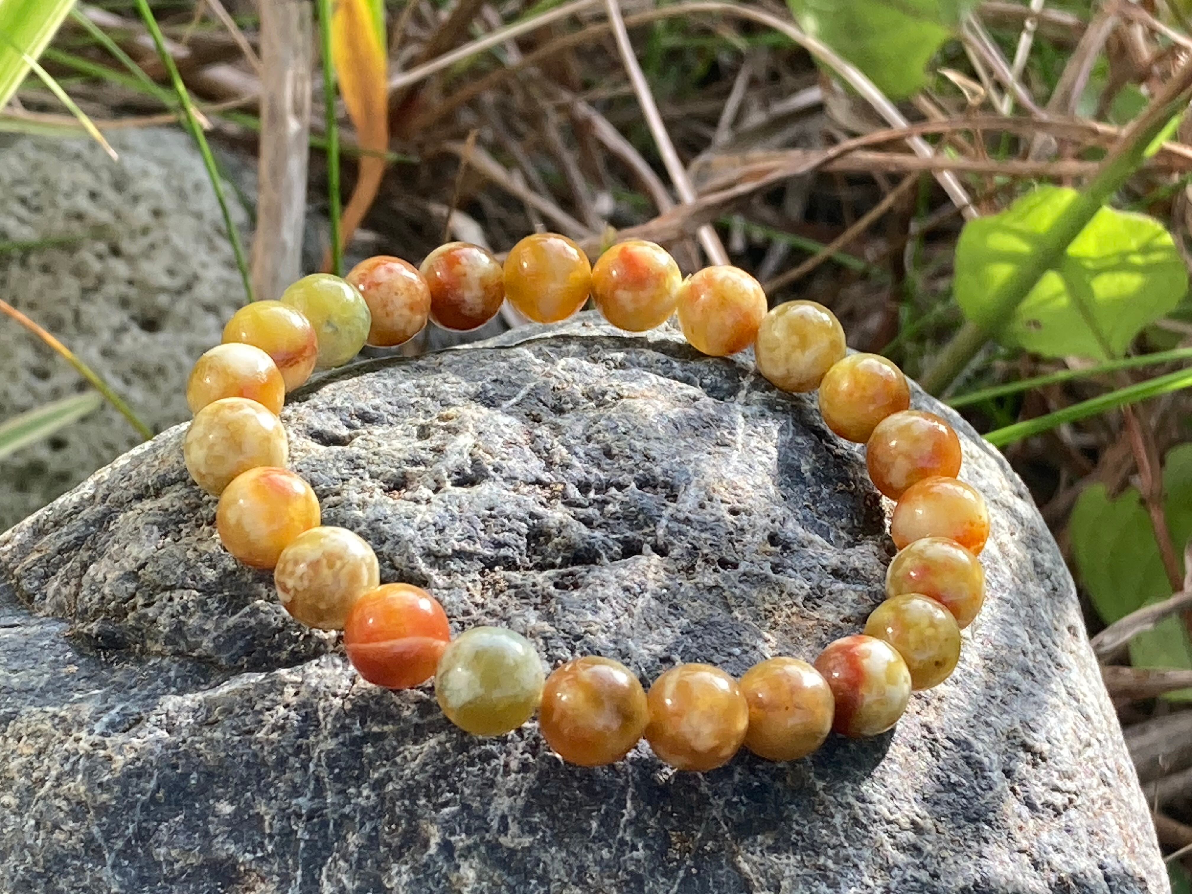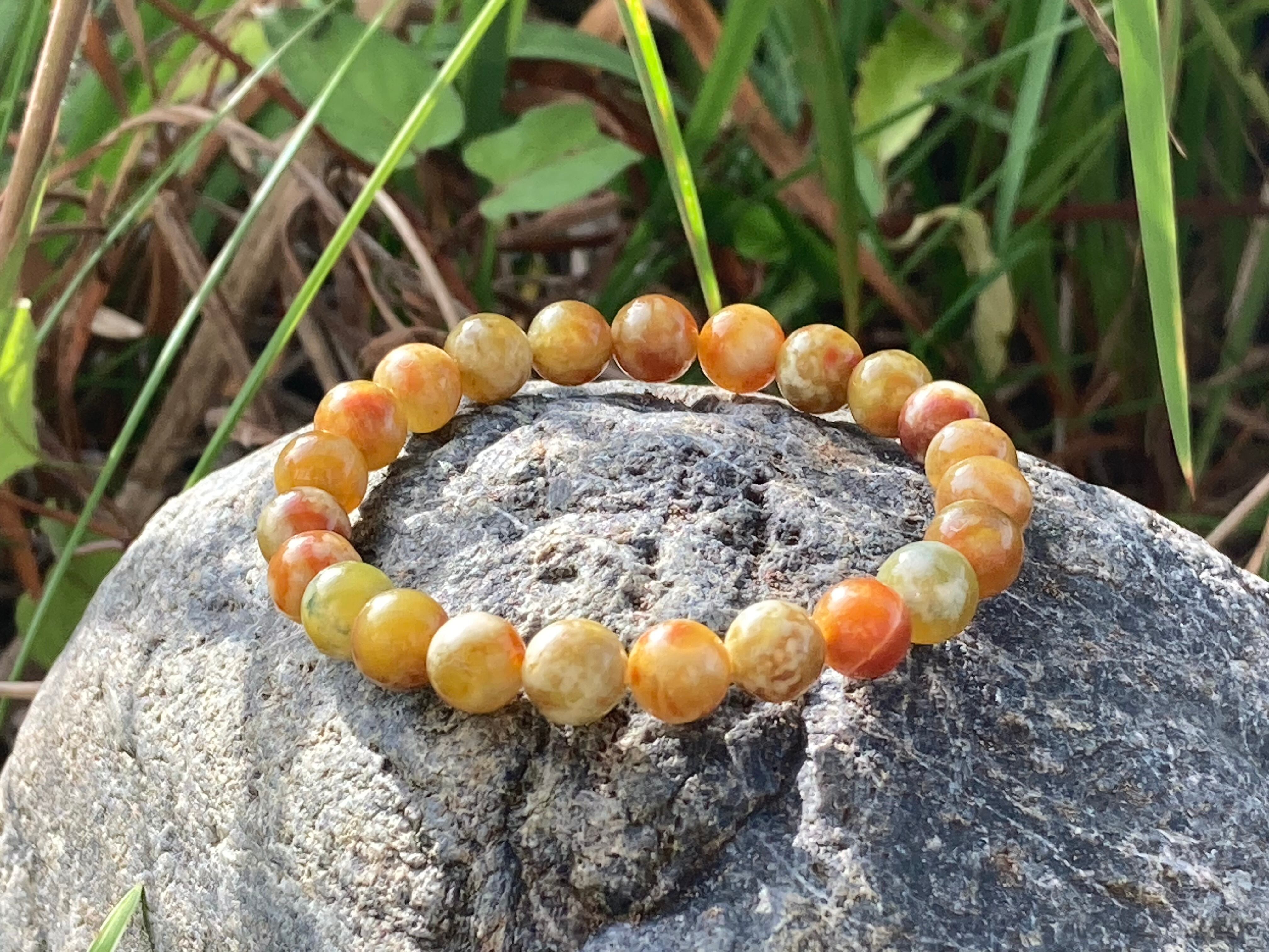サーペンティンは、緑と白の蛇紋が一般的ですがこちらはオリーブグリーンとオレンジの自然発色が奏でるところに白の蛇紋様が入る綺麗なサーペンティンです。