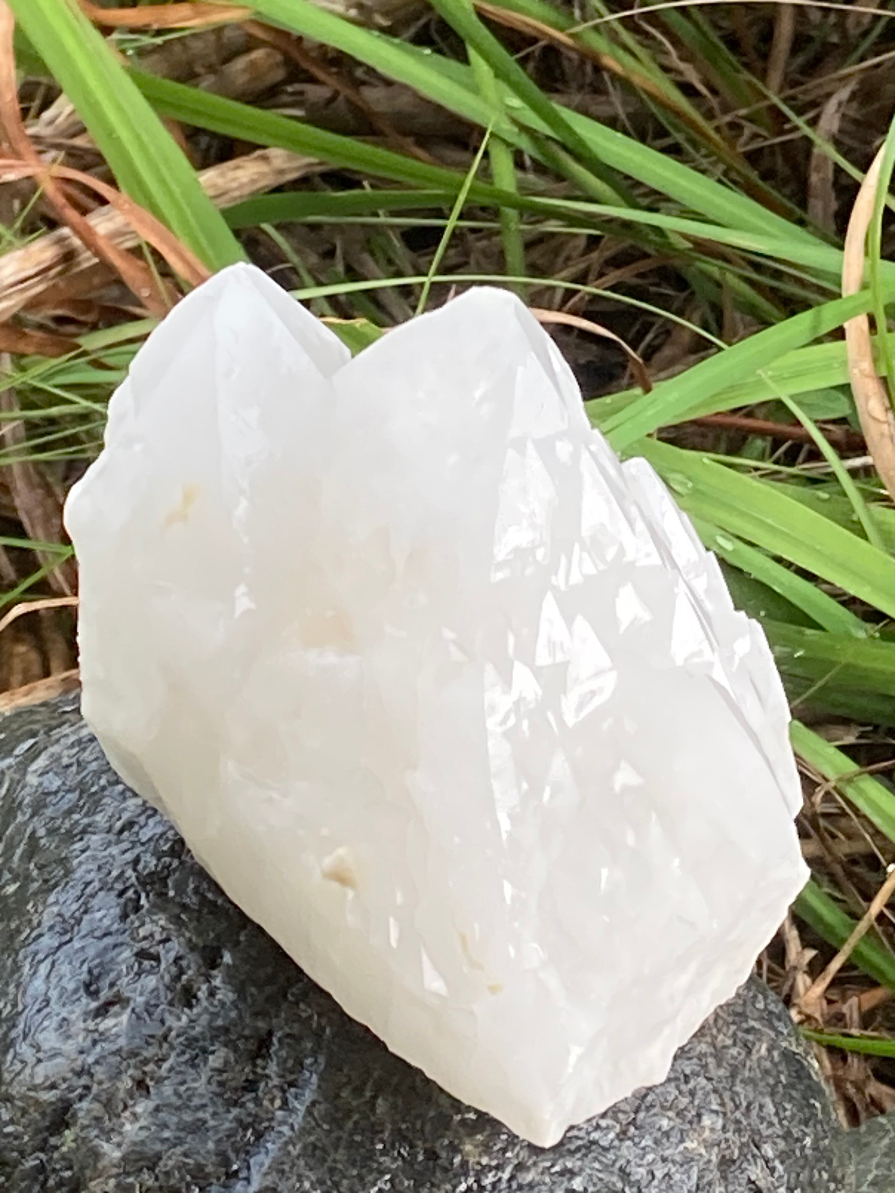 白水晶のジャガレー化したエレスチャル水晶です。深遠な年月をかけて、鱗状に結晶化しているのが特徴でエレスチャル水晶とは通常の水晶よりも古く、古代より水晶が成長していった水晶自体の最終形態のことを指します。