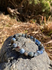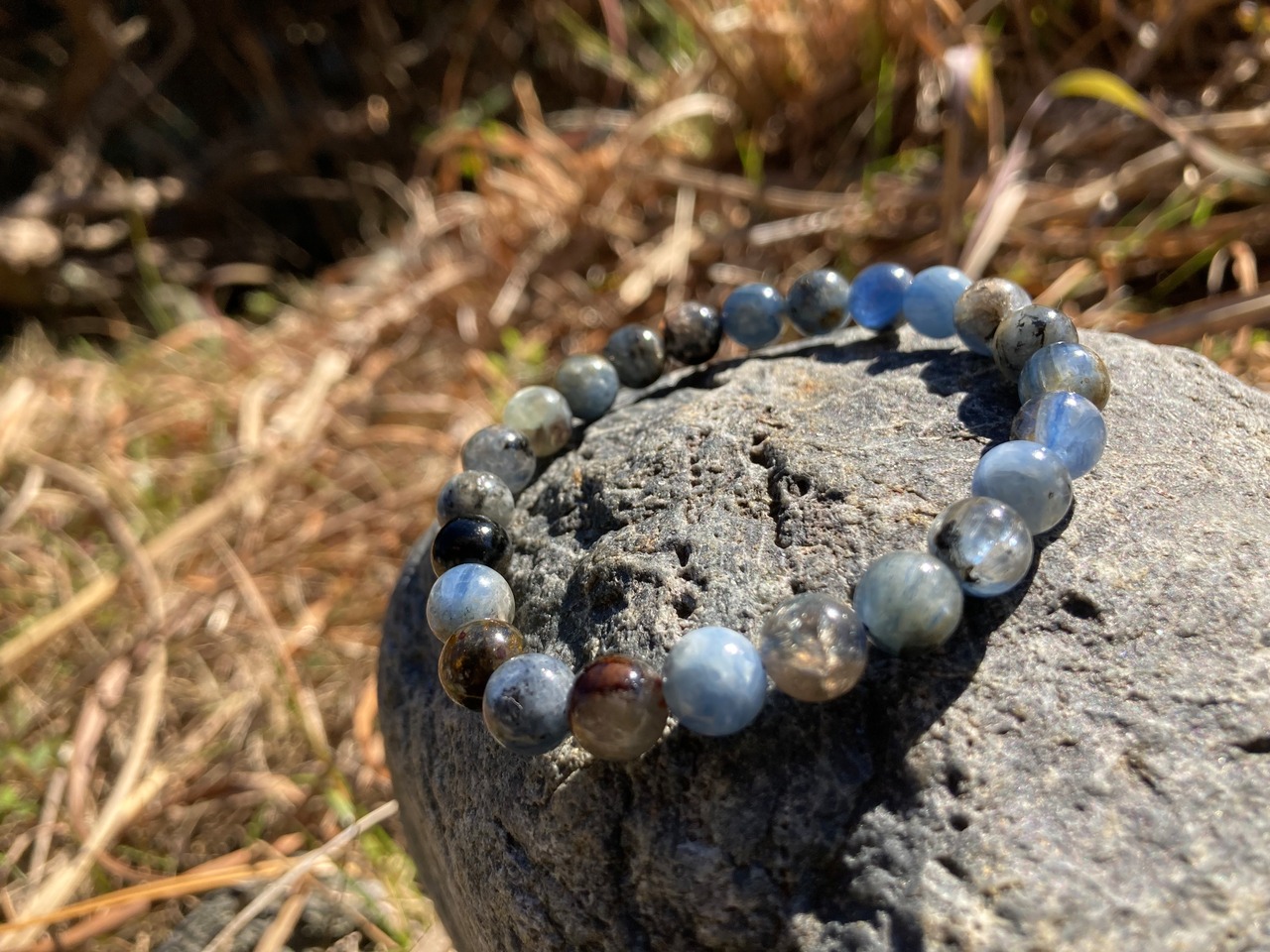 マイカインカイヤナイトは、カイヤナイト(藍晶石)とマイカ(雲母)が共生している天然石です。カイヤナイトの深い青色と、マイカのキラキラとした輝きが特徴です。精神的な安定や直感力を高める効果があるとされ、依存心や甘えをなくし、独立心や探究心を強め固定概念を外したり悪習慣を遠ざけることによって、持つ人の世界観を確立するのに補助する石で、希望の石、明晰化担当なお石さんで悪習慣を手放しやすくし、先の見えない未来の明晰化を徐々に図ってゆくと言う希望の石達の中でも先の見えない霧の中の不安を少なくするアプローチを持っていると言えるでしょう数ある希望の石と呼ばれる石達での中距離感を担当すると言えるでしょう^ ^