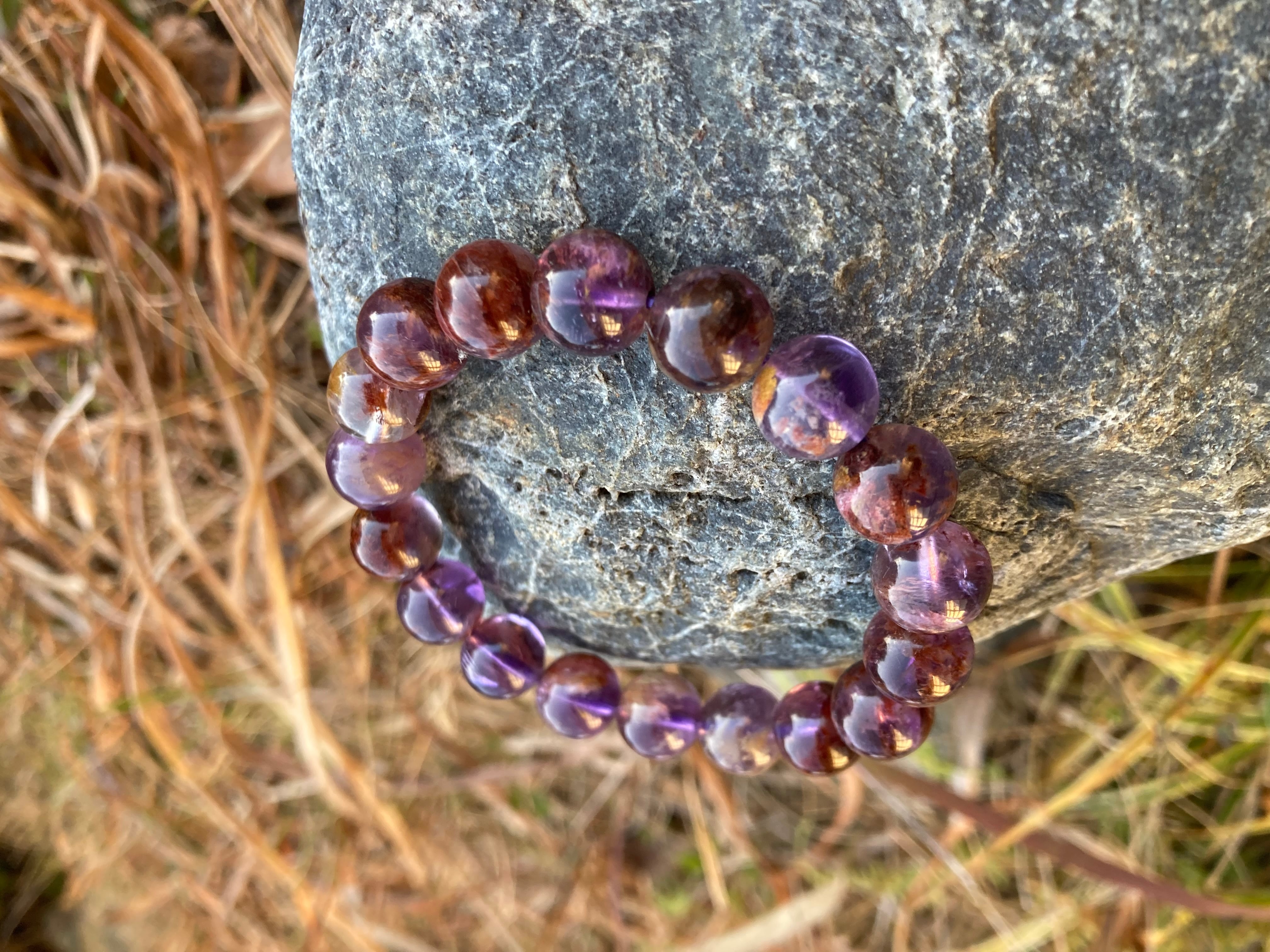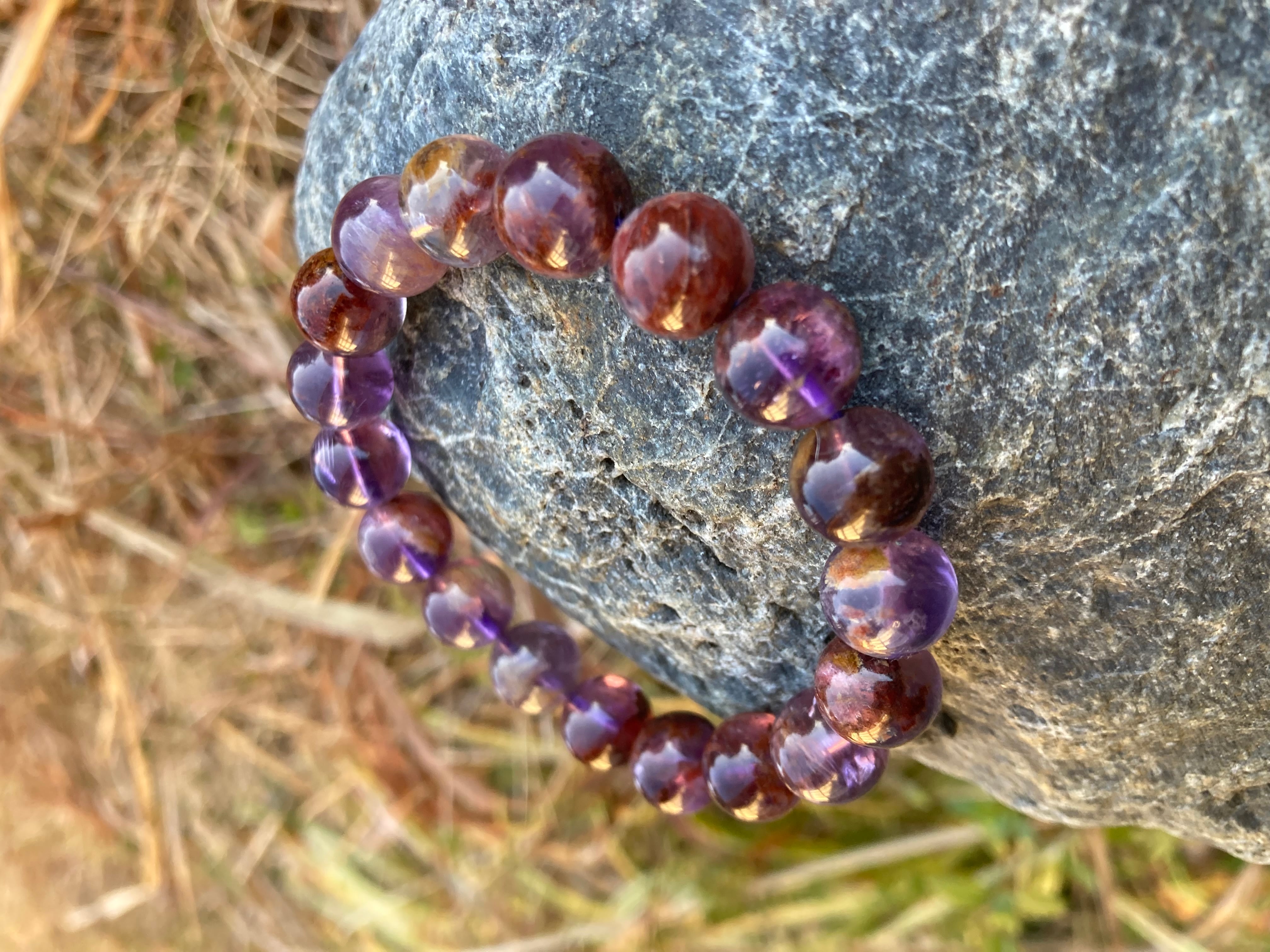 精神の安定、不眠の改善、集中力、創造力、理解力を高める、ストレスをやわらげる、家庭円満といったアメジストの特性との相乗効果を発揮し、自分の過度な思い込みをじっくり醒ますのにとても良く、しかも水晶の最終形態であるエレスチャルですので、叡智溢れる奥深い石まるでそっとずっと人生の良いも悪いもをも、通り越して見守ってくれるような石です^ ^