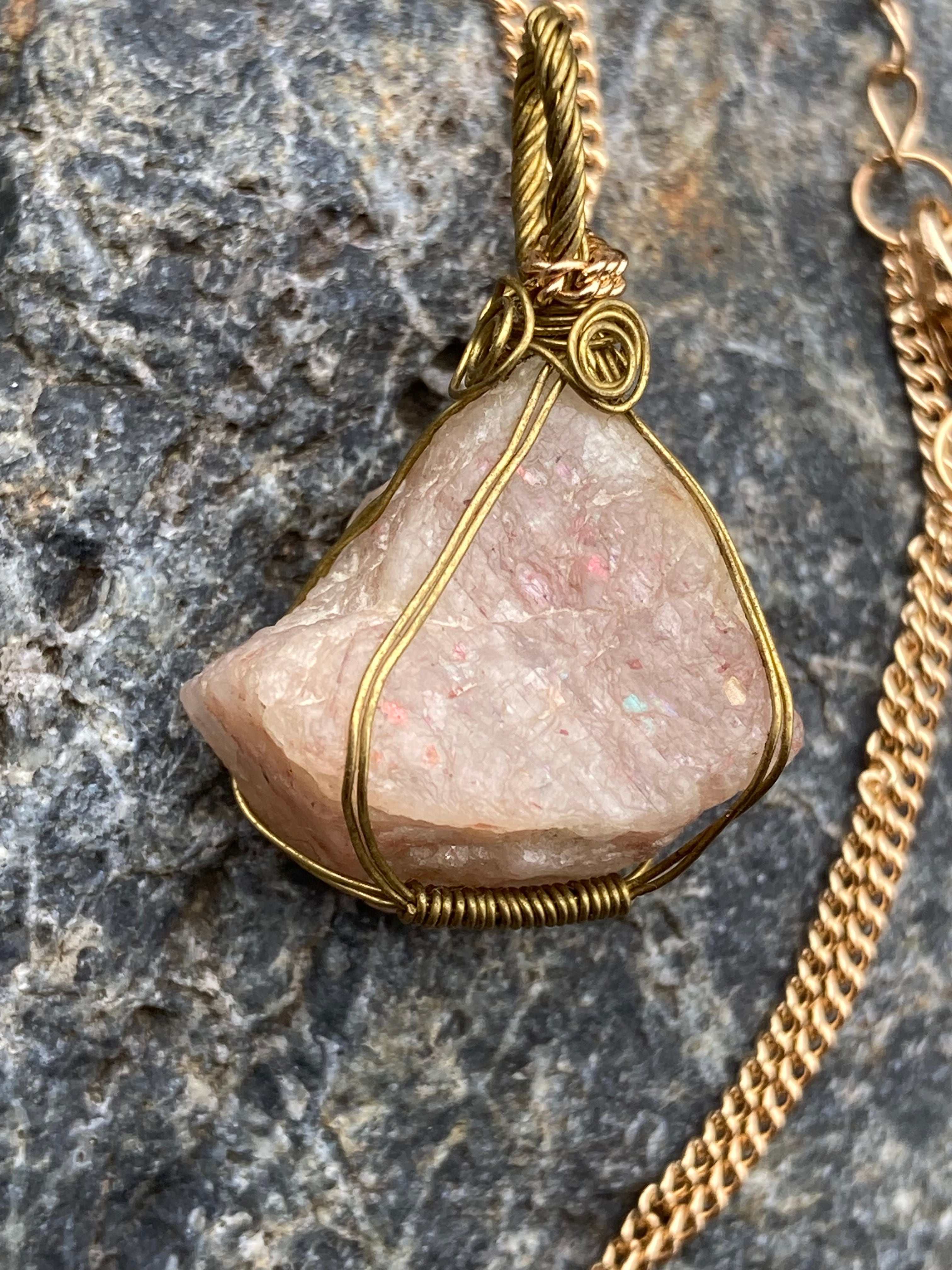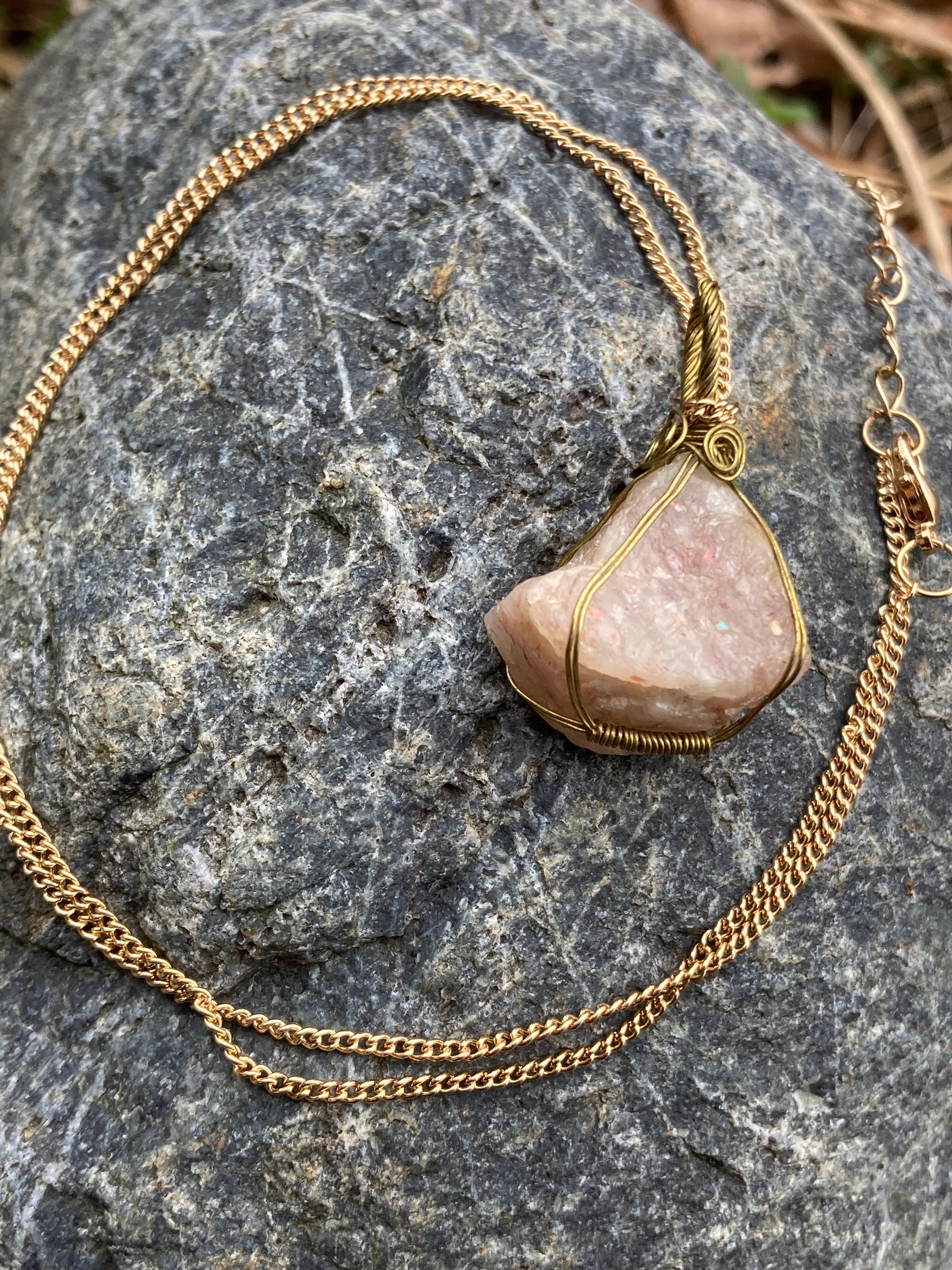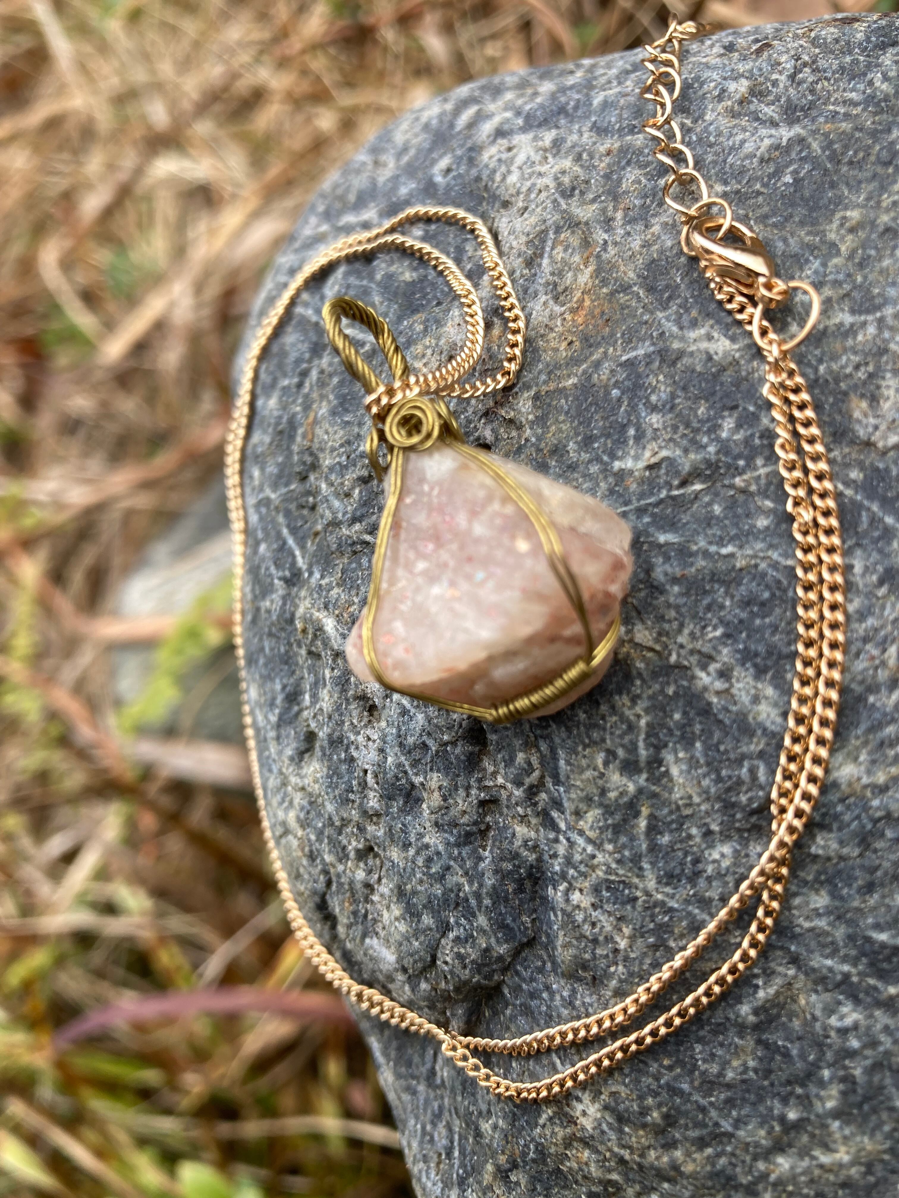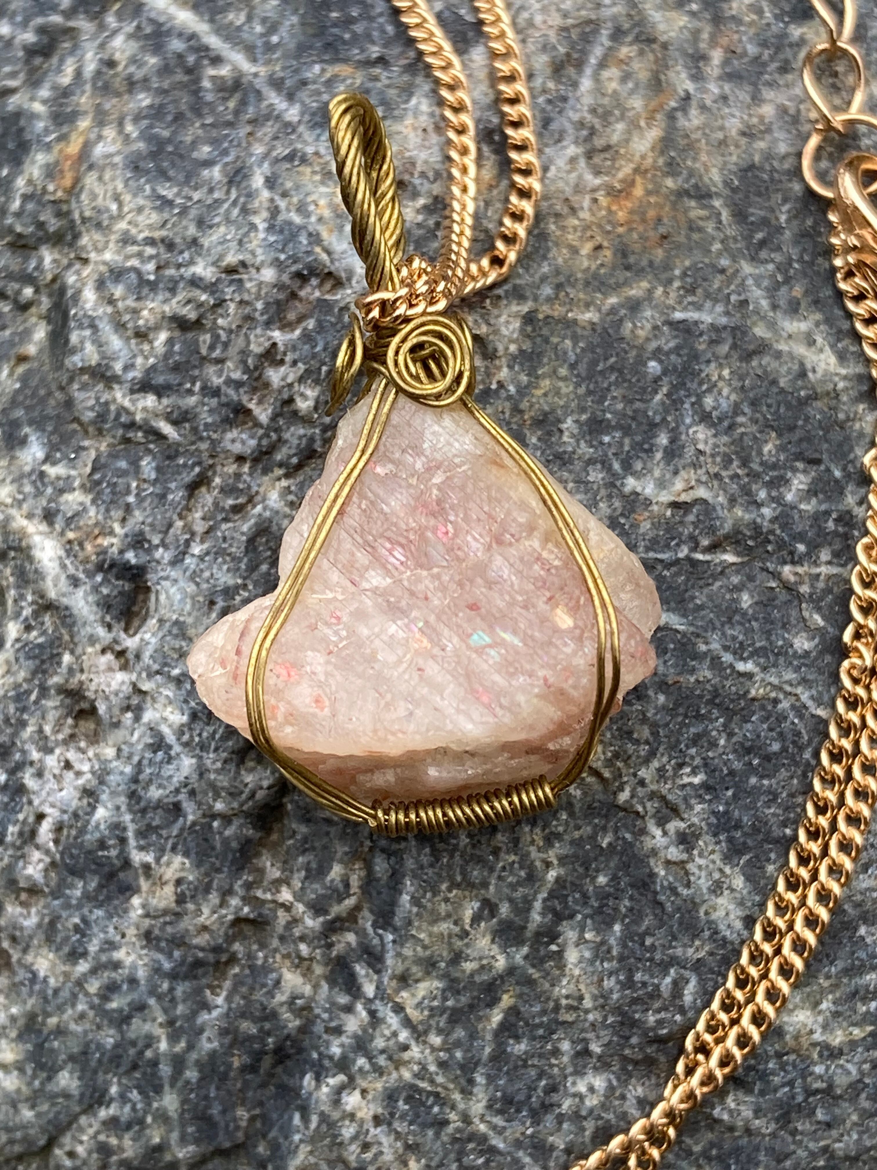 【最近自分、陰気だなと言う人へ】サンストーン原石ペンダント(チェーンはオマケ)