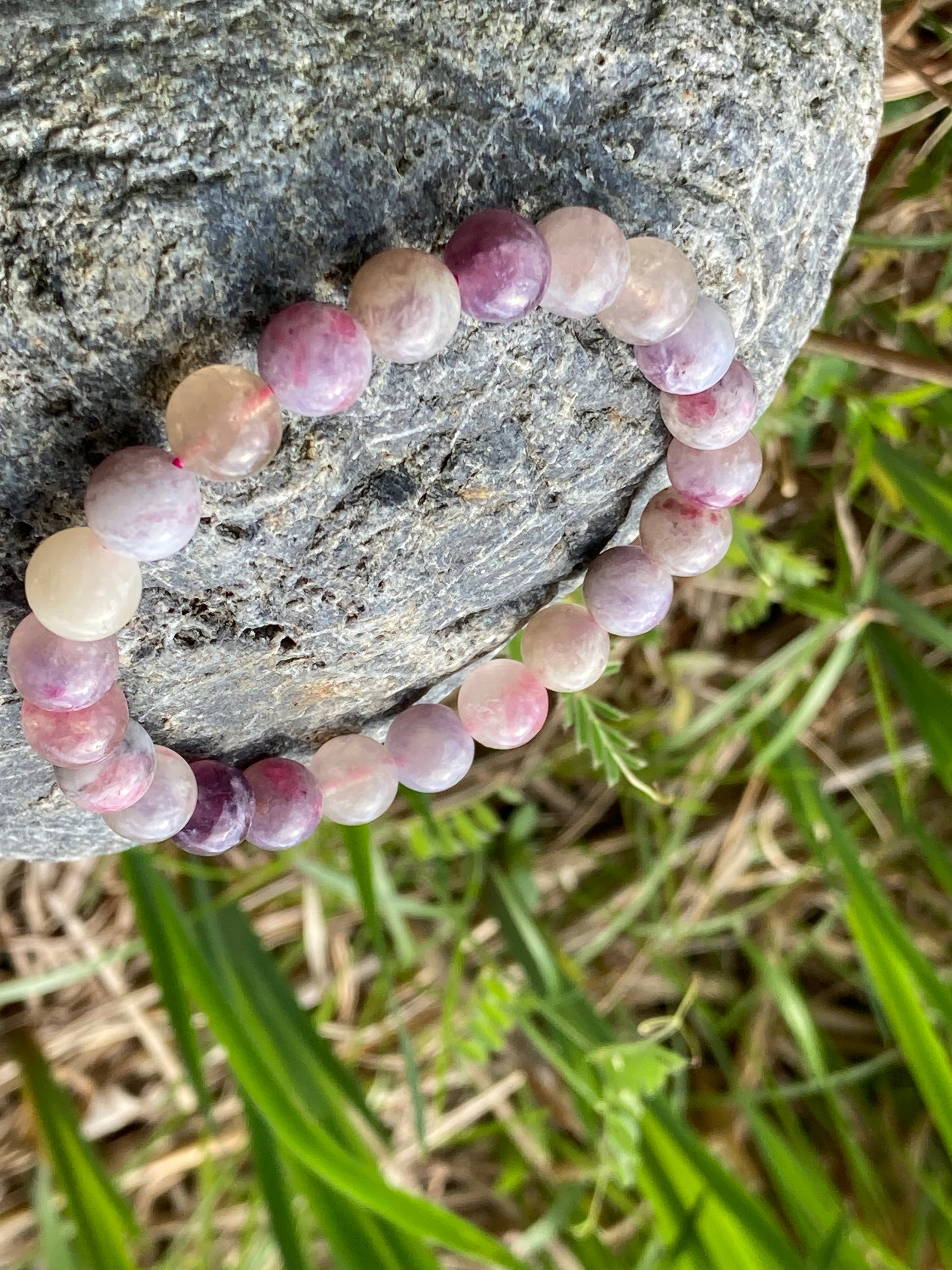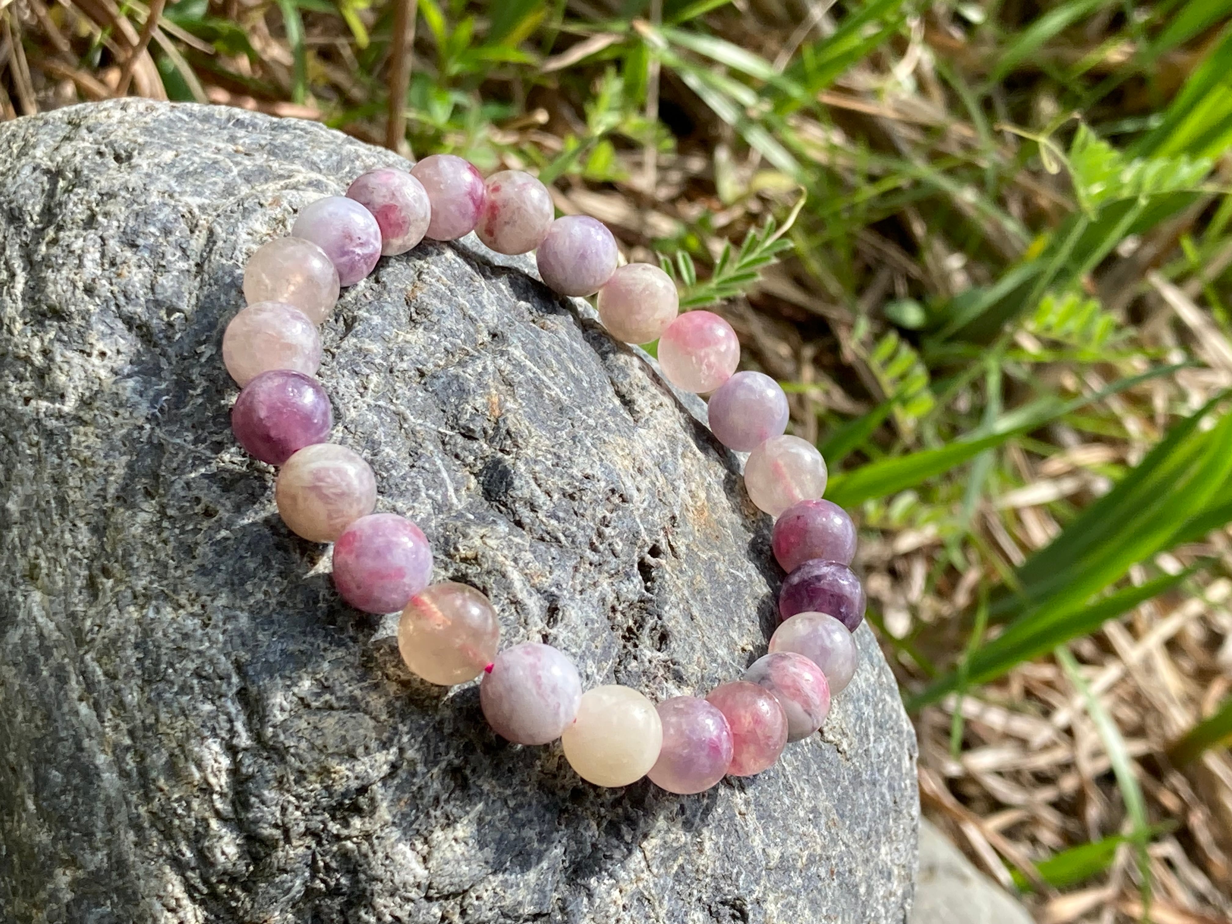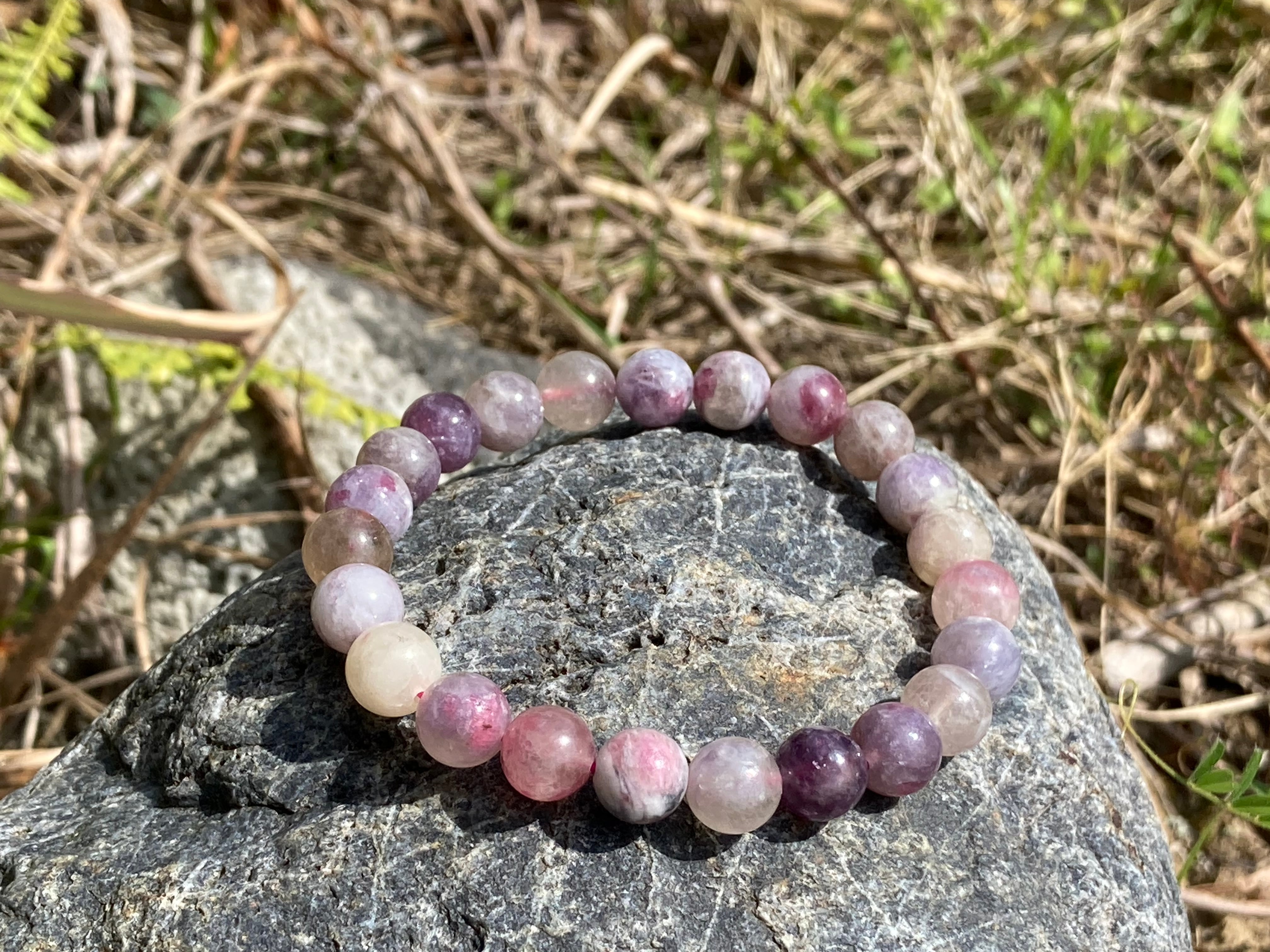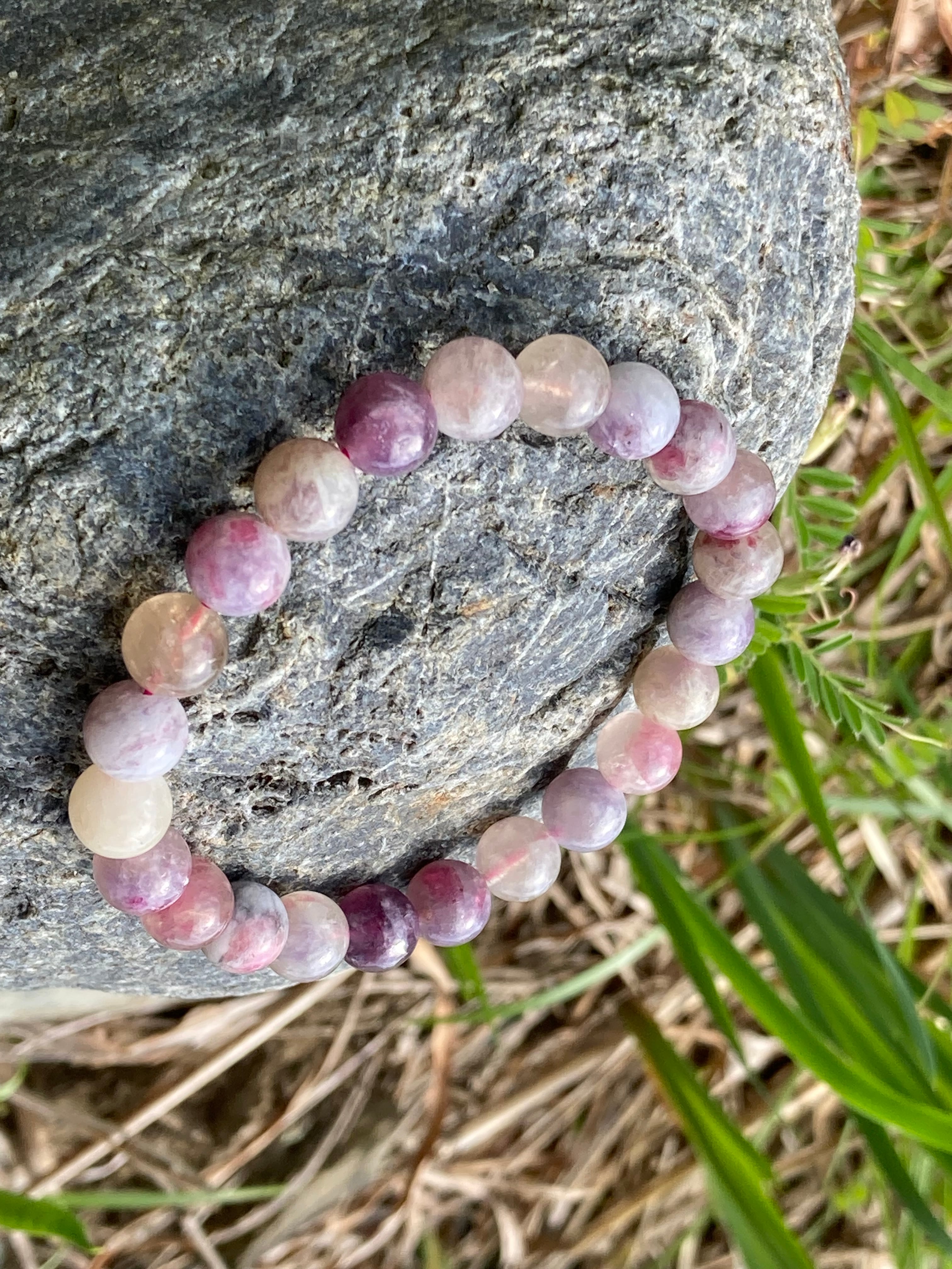 ピンクトルマリンとシリカ(水晶質の混じり)が織りなすピンクトルマリンシリカの中でもマーブル感と紫色のパープルなトルマリンも混じるブレスです。自分のふてぶてしさが嫌な人などにとてもよく、包むサポートの石もあり、トルマリンは別名:電気石ともいわれ、静電気体質を持つ方にもとても良く、徐々に体質改善に貢献してくれ、静電気体質についてはスピリチュアル的には負を引き寄せるとされ、あまり良くない状態ですので、あまりにも自分は、静電気を帯びるなって思う人には特におすすめです。パソコンや電磁波を受ける環境の人にも良く、障害を取り除く石としても知られるパワーストーンの代表格のひとつとして、パワーストーン初心者の方にも良いでしょう。