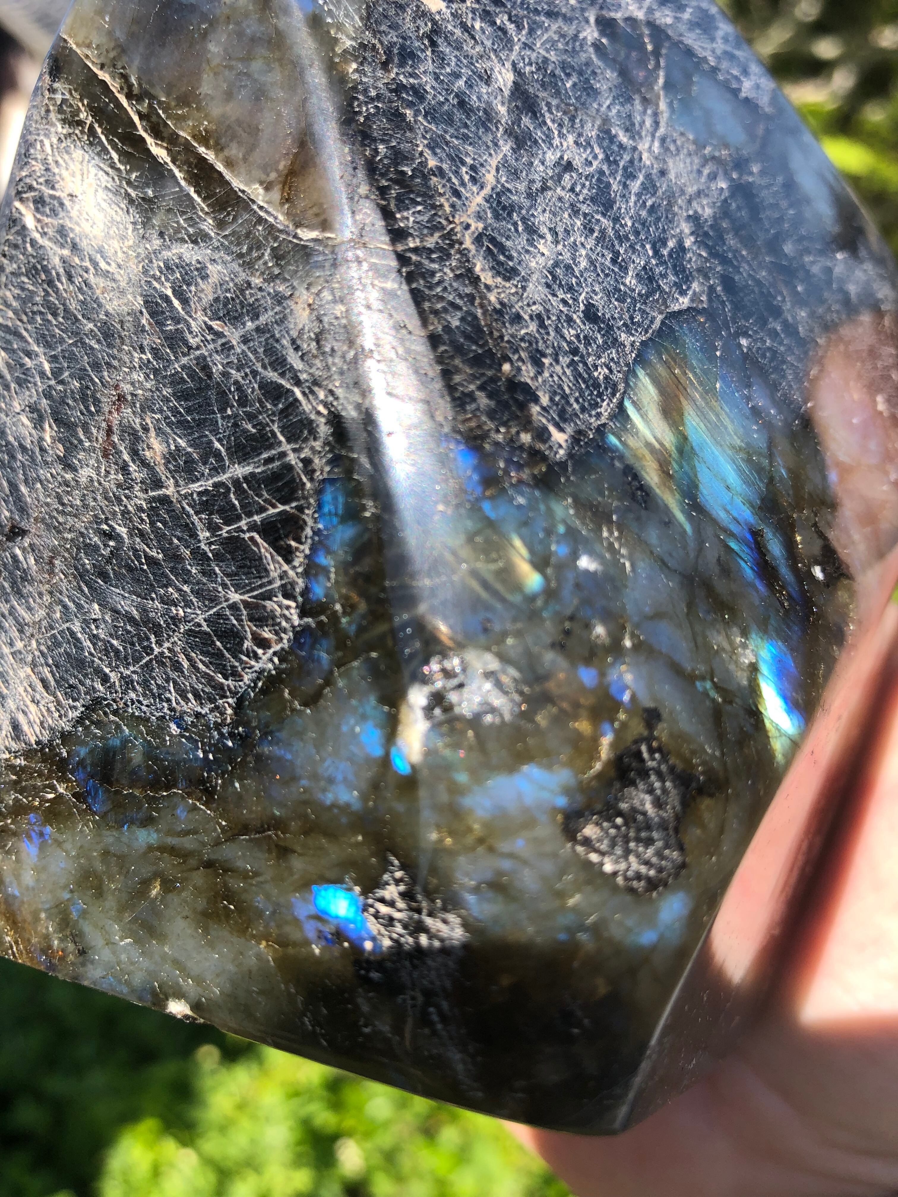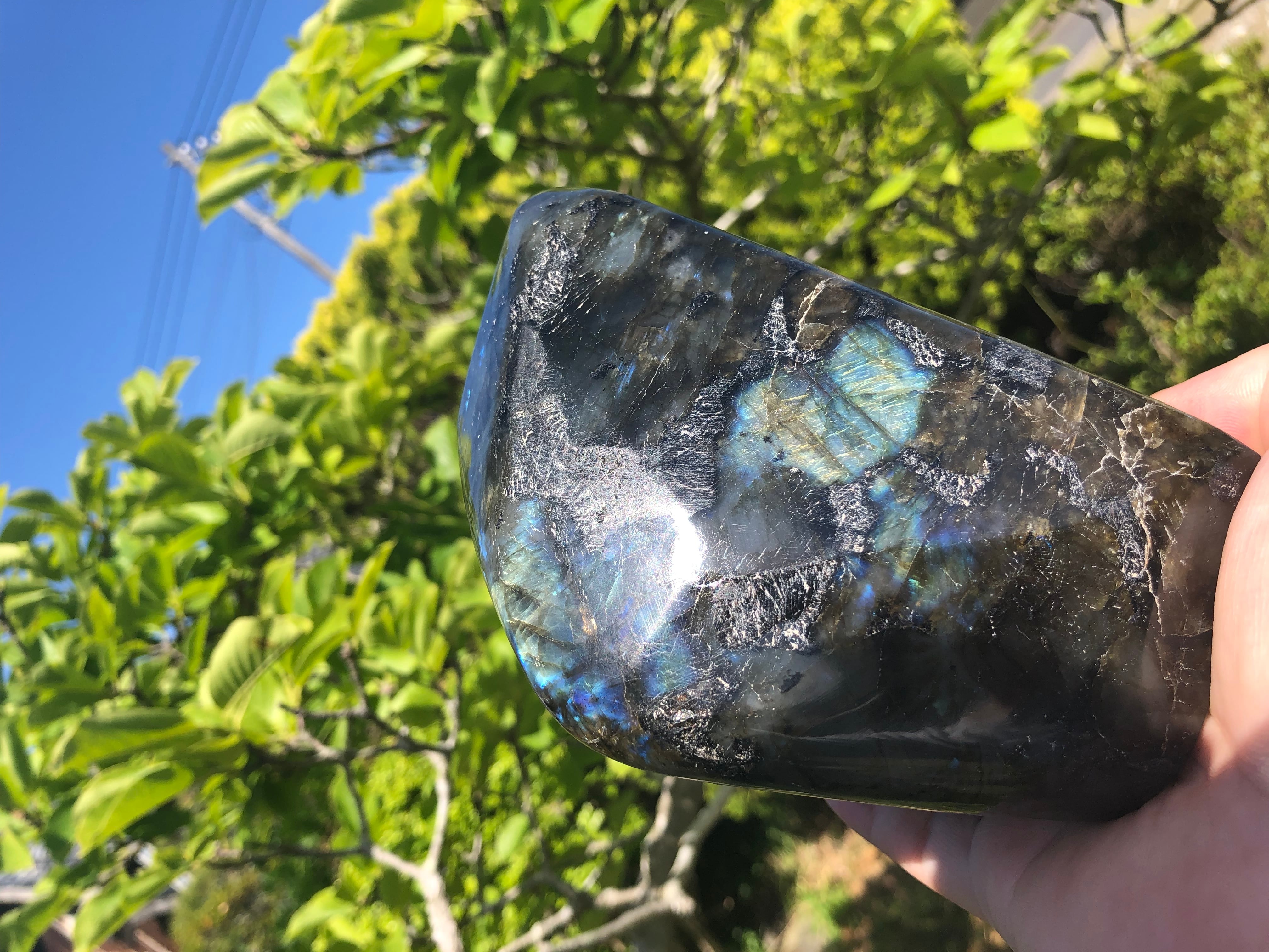 ラブラドライトらしいブルーシラーと大自然のうねりのような原石感が大いに味わえるお方です^ ^