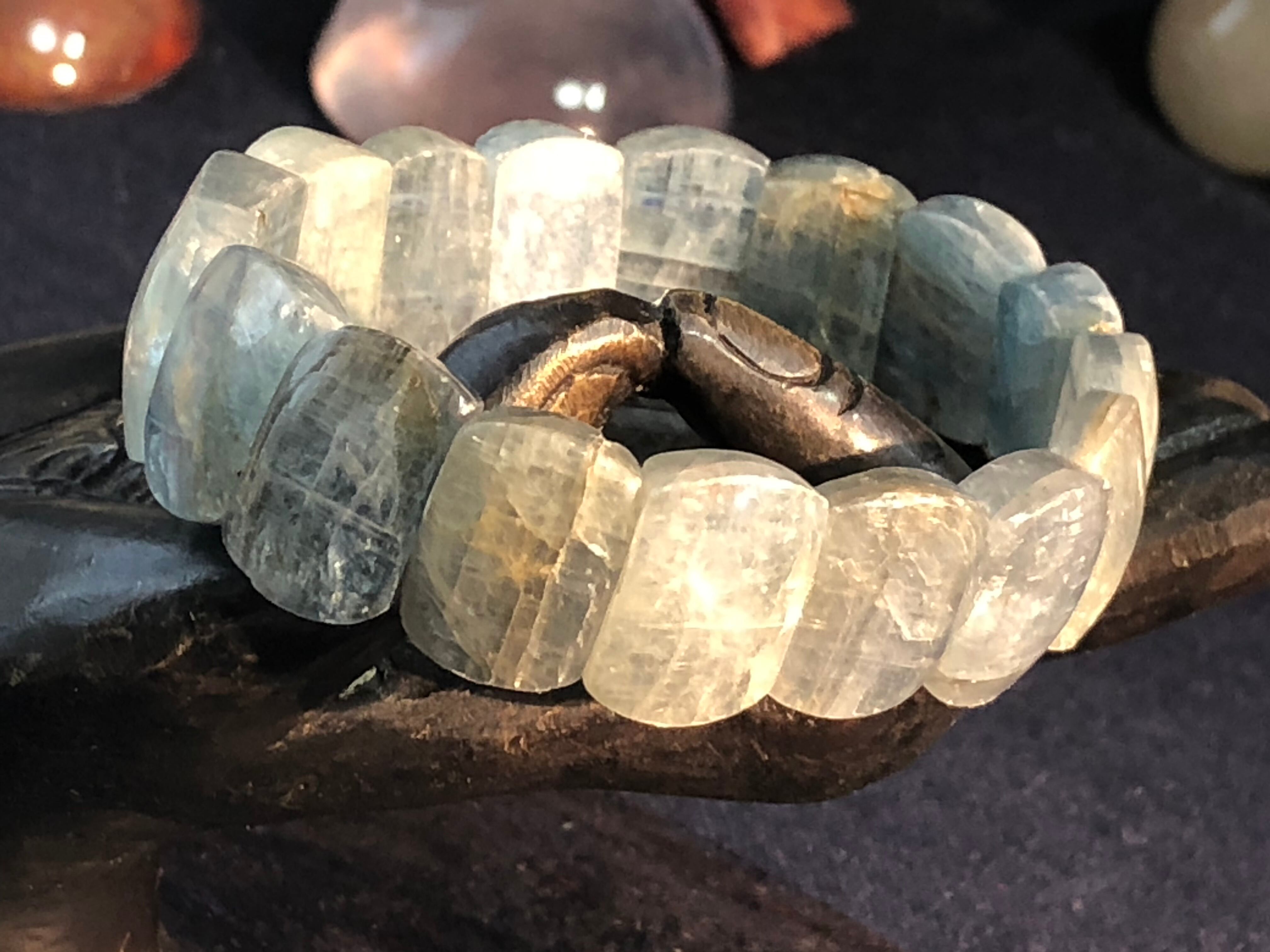 【アンティークステンドグラスのような】カイヤナイトバングル