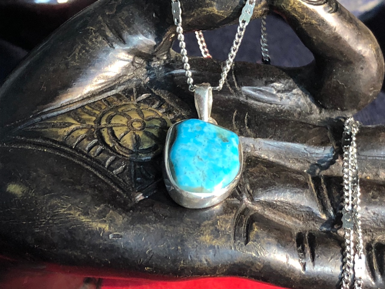 このターコイズはアメリカアリゾナ産アリゾナブルーと呼ばれる濃さや青さを受け継いでいるターコイズでですね^ ^