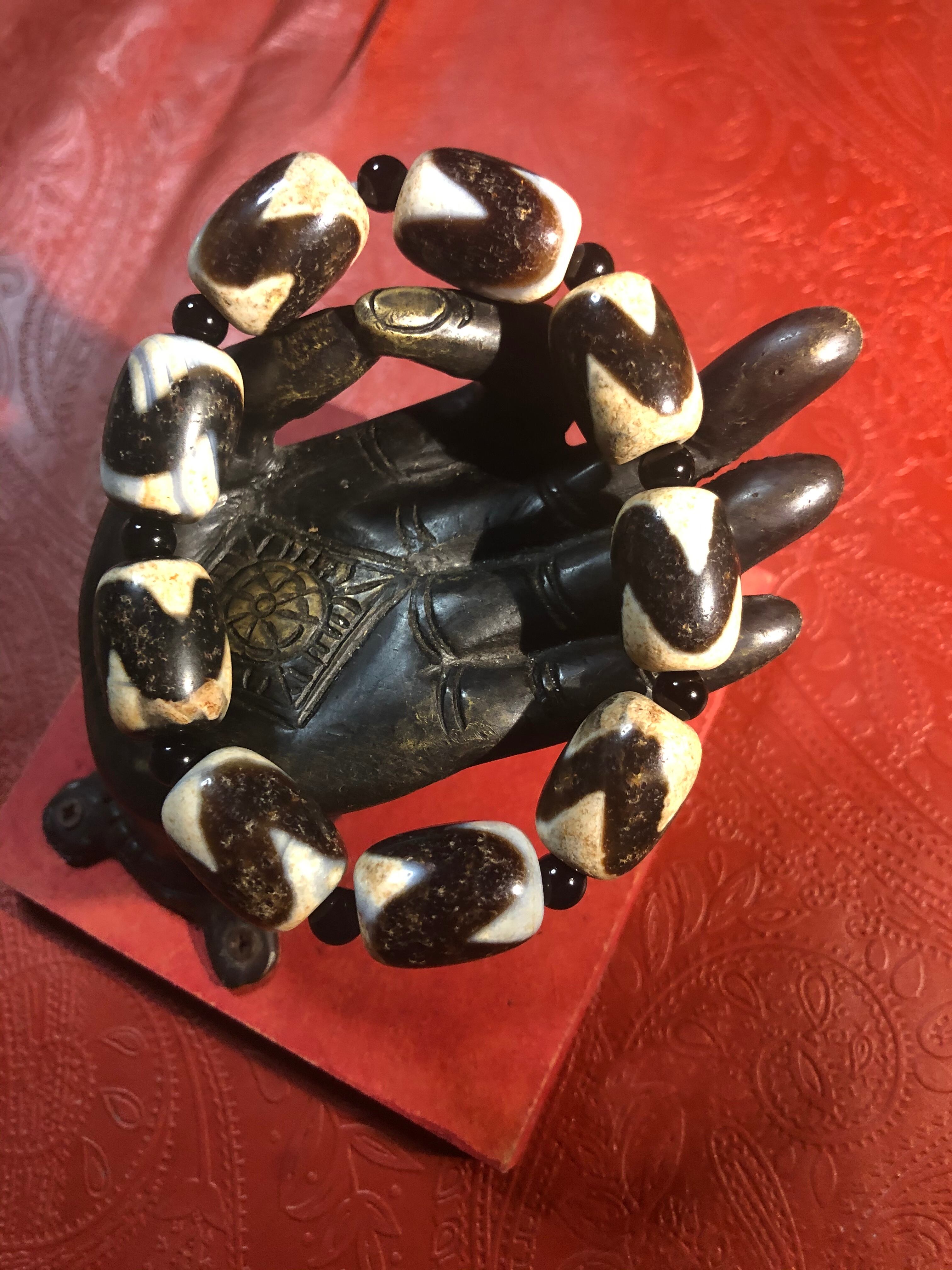 虎牙天珠とは、非常に強力な魔除けであり、怨敵調伏、つまりはライバル、競争相手に勝ち、事故を除け、戦いに勝ちぬく力を授けてくれると云われている天珠で、チャンスを掴むのにとても長けている天珠です^ ^