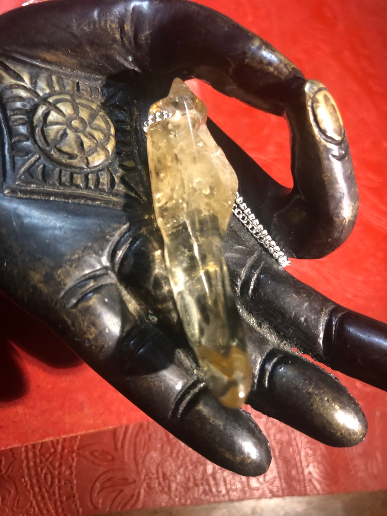 【eさん専用簡易特殊お守り】【剣のようなポイントが魅力】シトリンペンダント約9g(チェーンはおまけ)