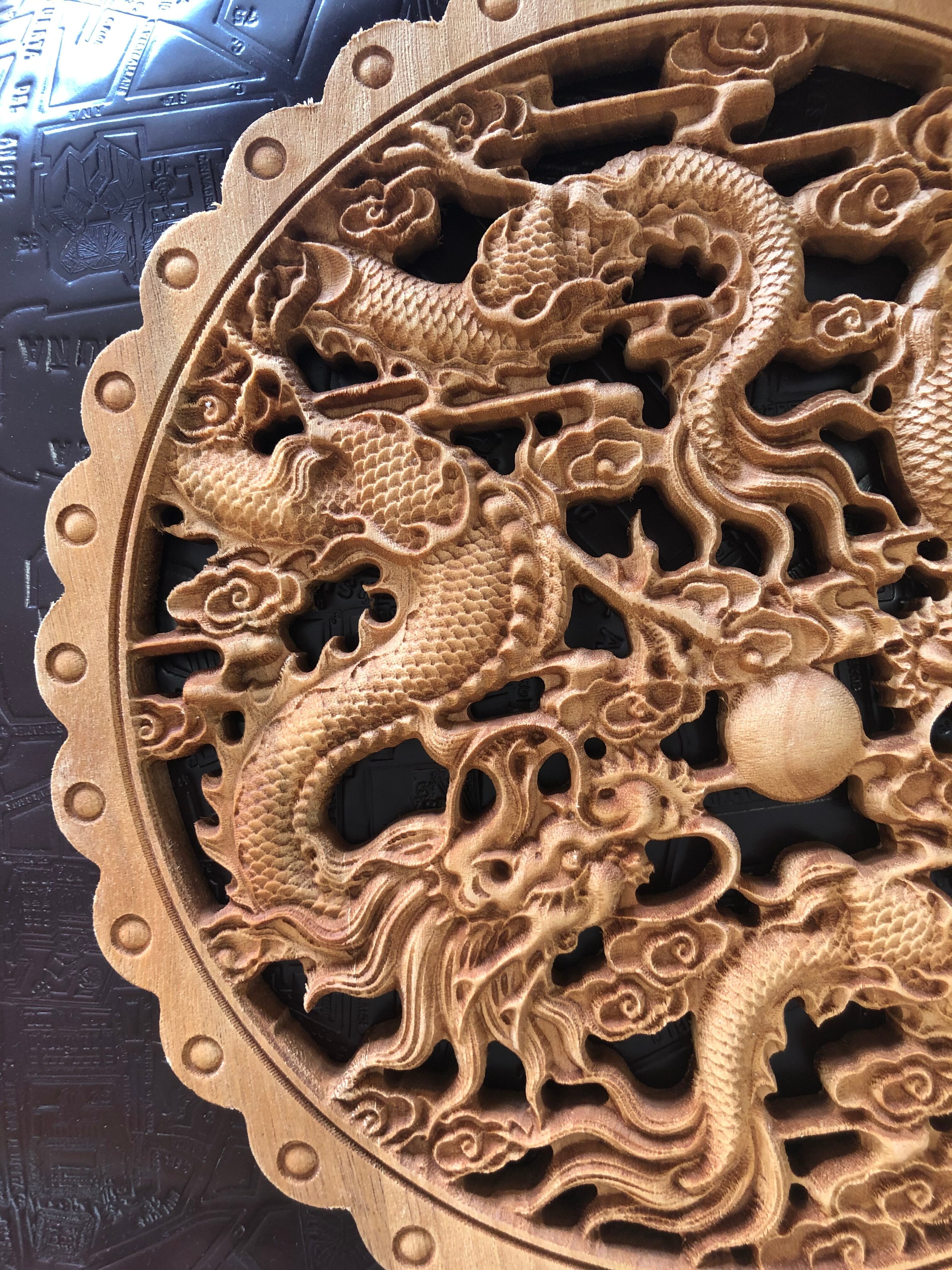 【玄関や壁掛けに】楠(クスノキ)双龍のレリーフ(イーゼル付属しません)