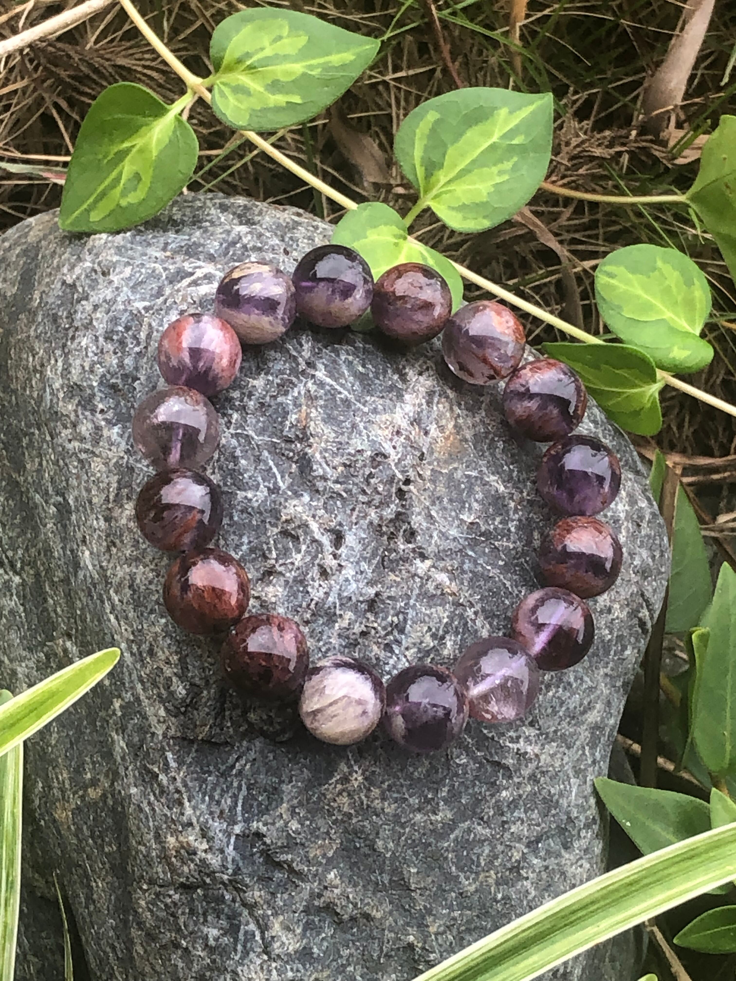 精神の安定、不眠の改善、集中力、創造力、理解力を高める、ストレスをやわらげる、家庭円満といったアメジストの特性との相乗効果を発揮し、水晶の最終形態であるエレスチャルですので、叡智が加わるとても奥深い石です^ ^