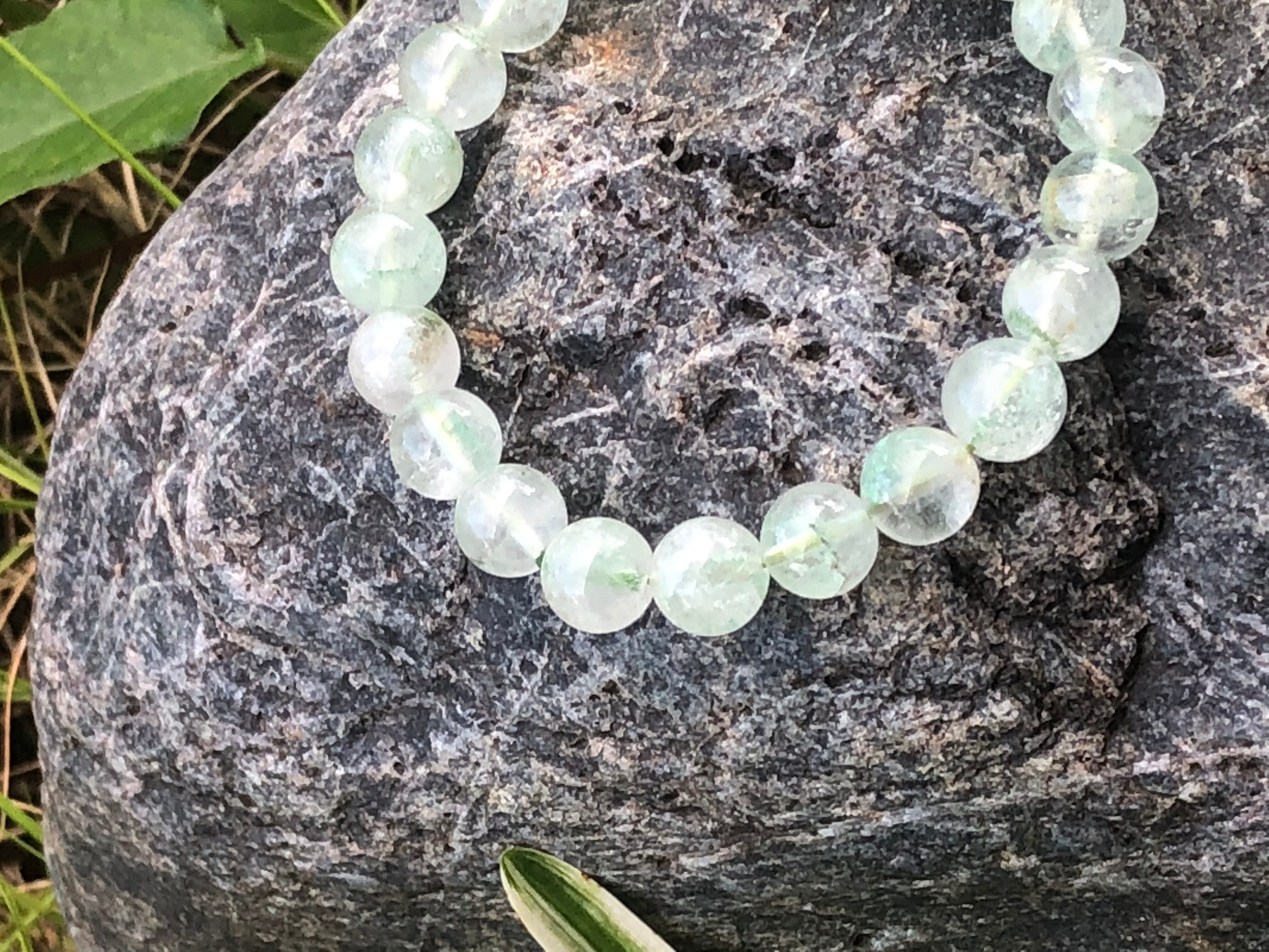 パステルグリーンの石はごく稀に算出されますがグリーンガーデンでのパステルの色合いを醸す石は稀です。パステル調の色合いを持つ石は稀なため、エネルギーが特殊に感じられる場合が多々ありますが、リンパ系の整調、不安感を和らかせるのにとても良い特徴があり、健健面や精神面での整え、コミニュケーション、良縁の巡りにも良いとされている部類の石となります。