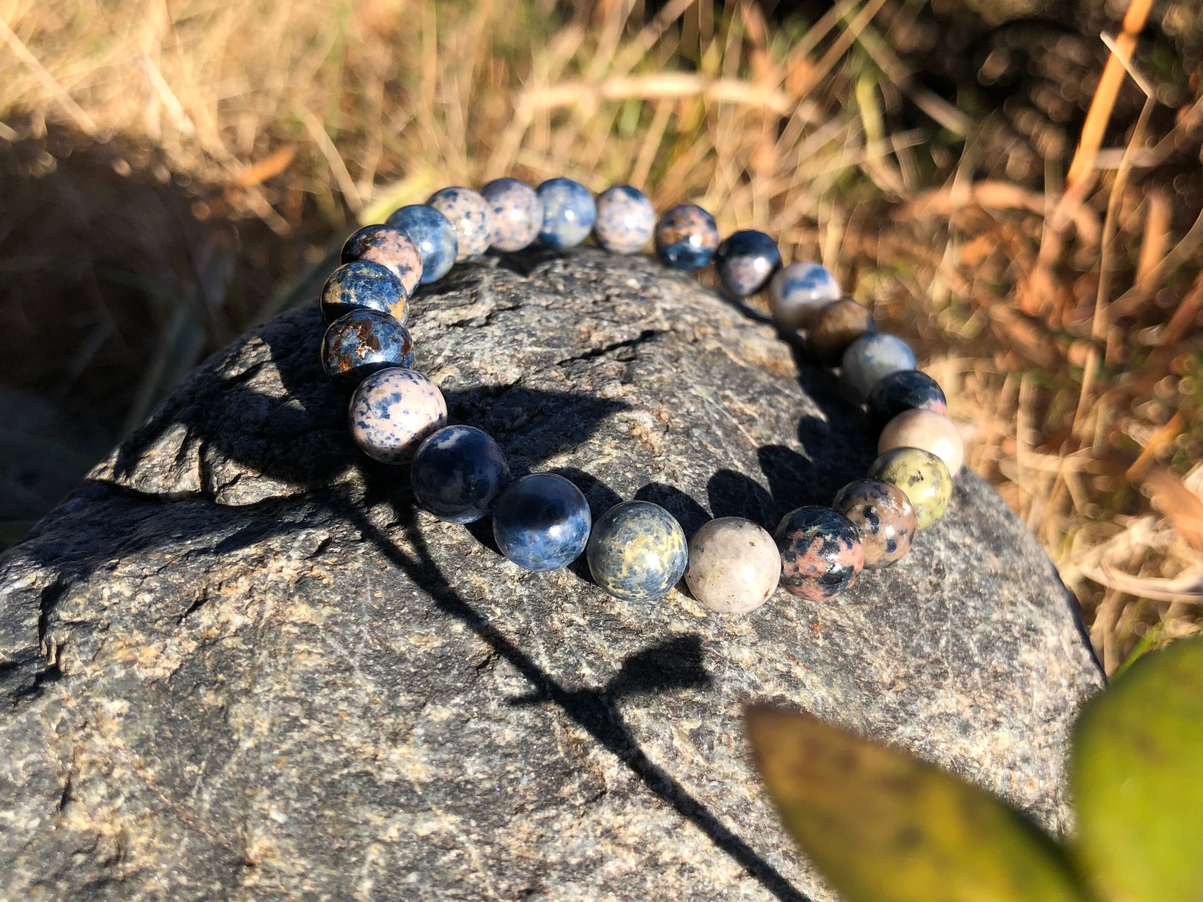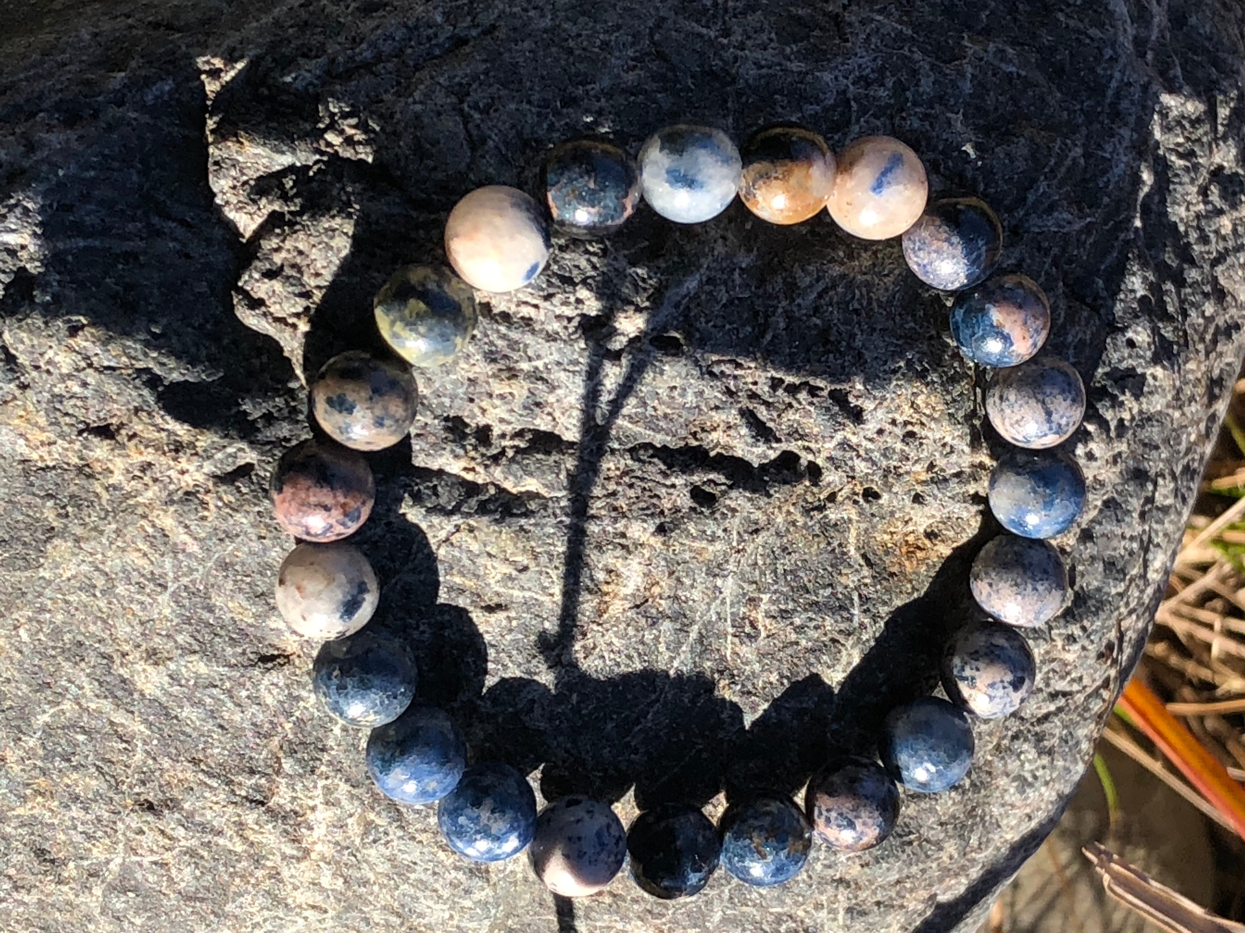 大変、珍しいブルースピネルの母岩ごとブレスレットになったものです。