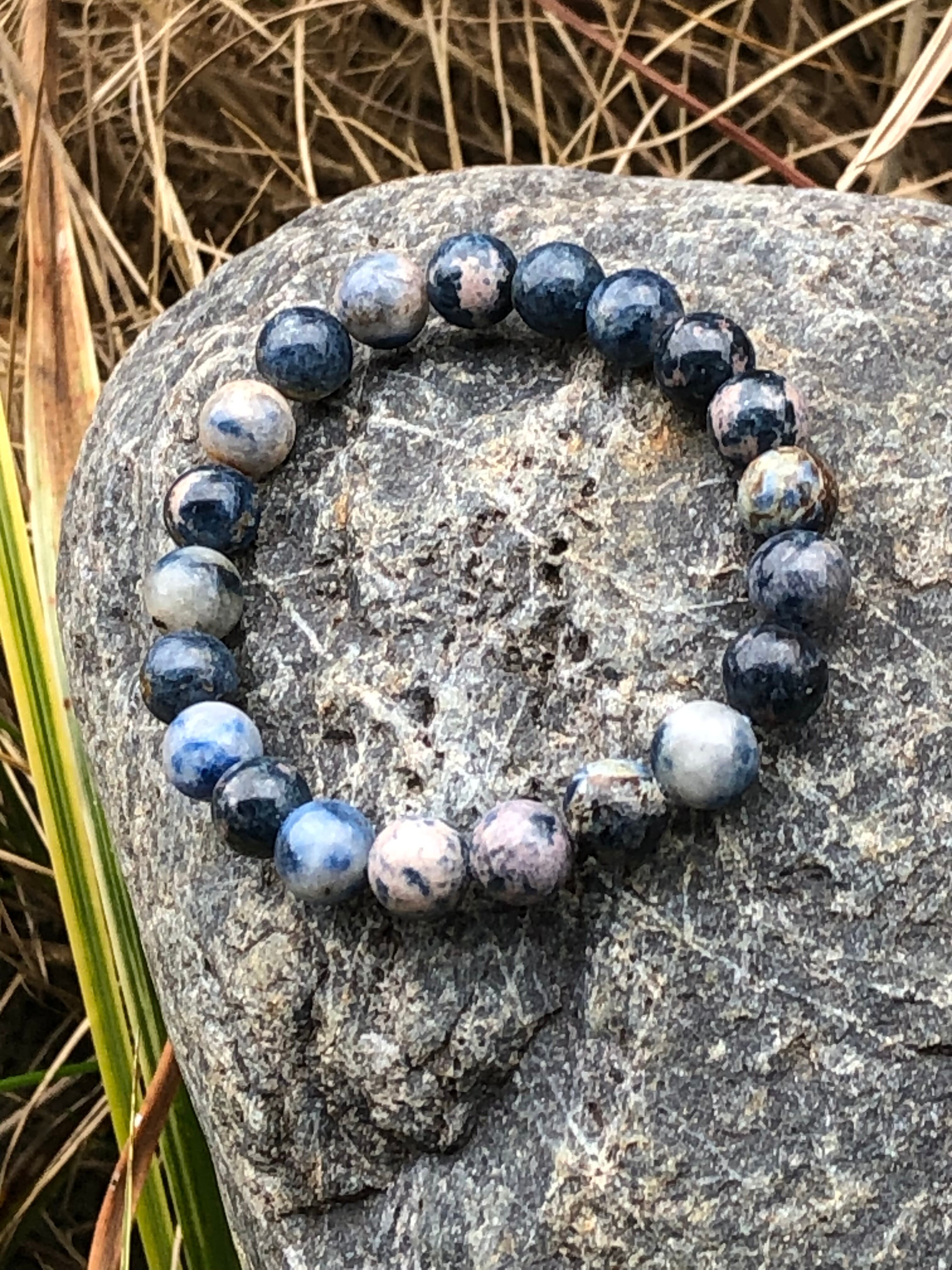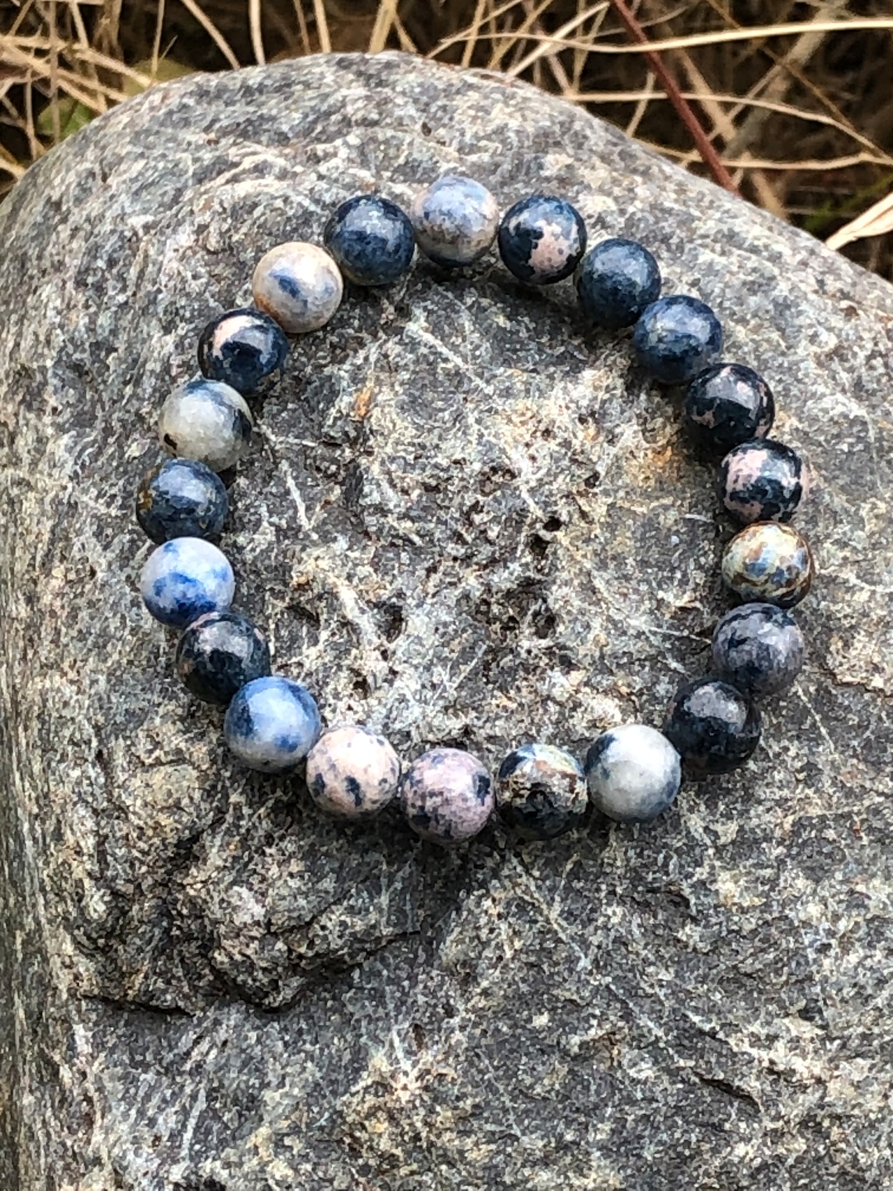 とても希少で高価なブルースピネルを母岩ごとブレスレットになったブルースピネルマトリクスで、とても珍しいものです。