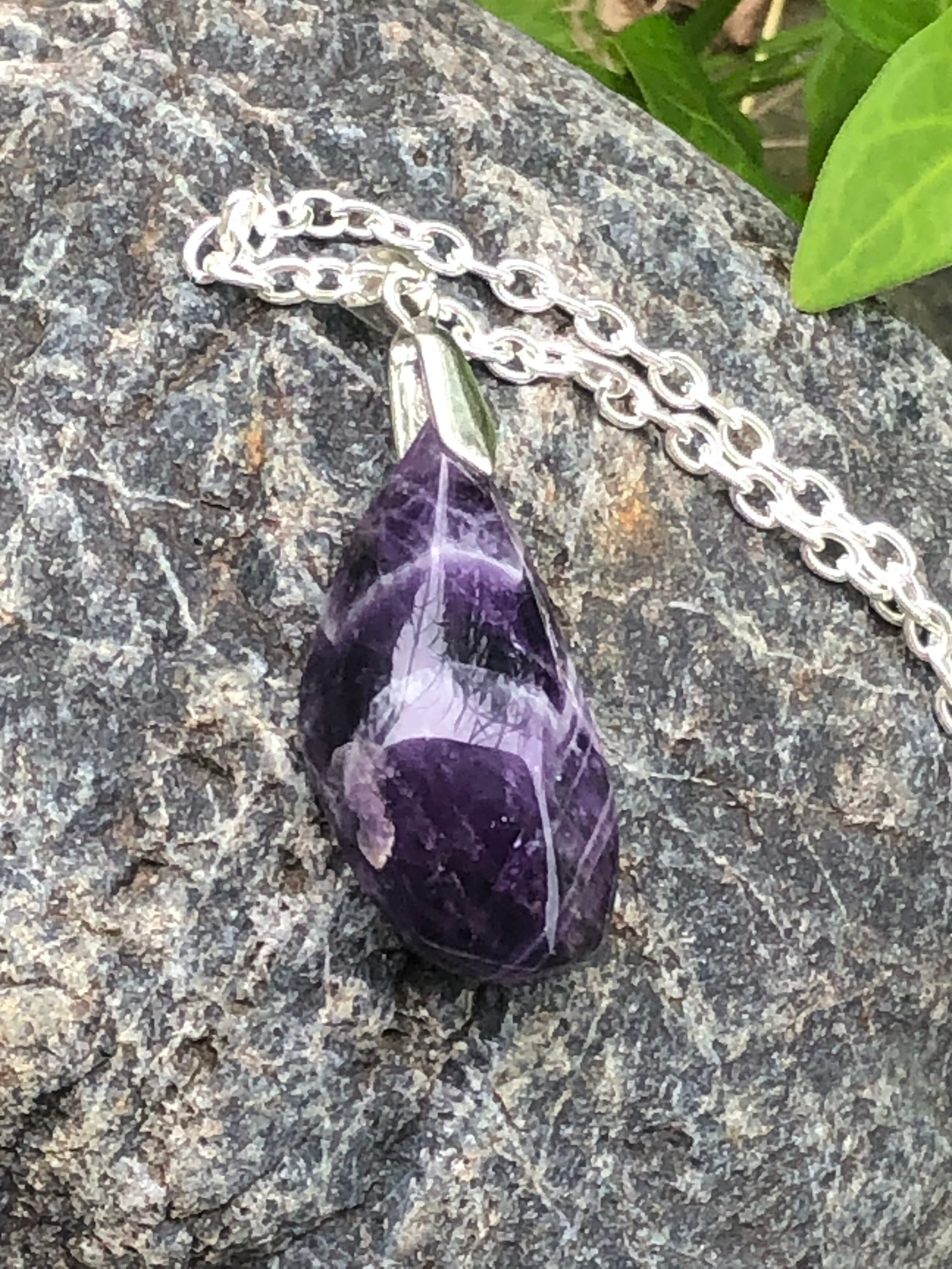 【原石感漂う】シェブロンアメジストマテリアルペンダント