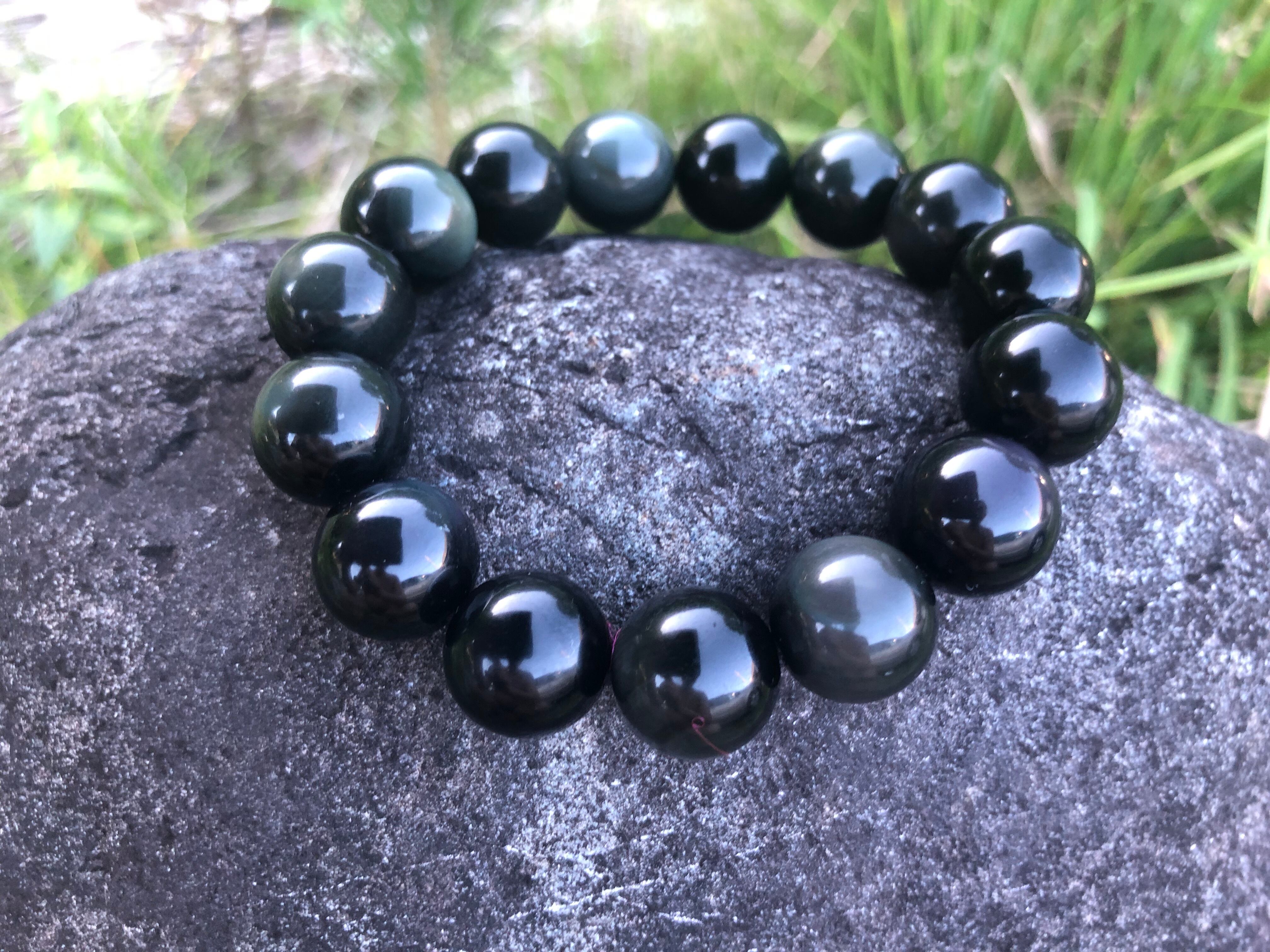 当店では過去何年の実績でもそういった方にお勧めをして実績を持つ石でもあり、特に14㎜珠の大玉が効果的なのでこのサイズ感のみ扱います。魔除けにも強いですがオブシディアン系の特徴として、水晶系より腰がはなくヘタレやすいで頻繁に浄化は必要ですのが、効果面においた早いアプローチがあるのも特徴です^ ^