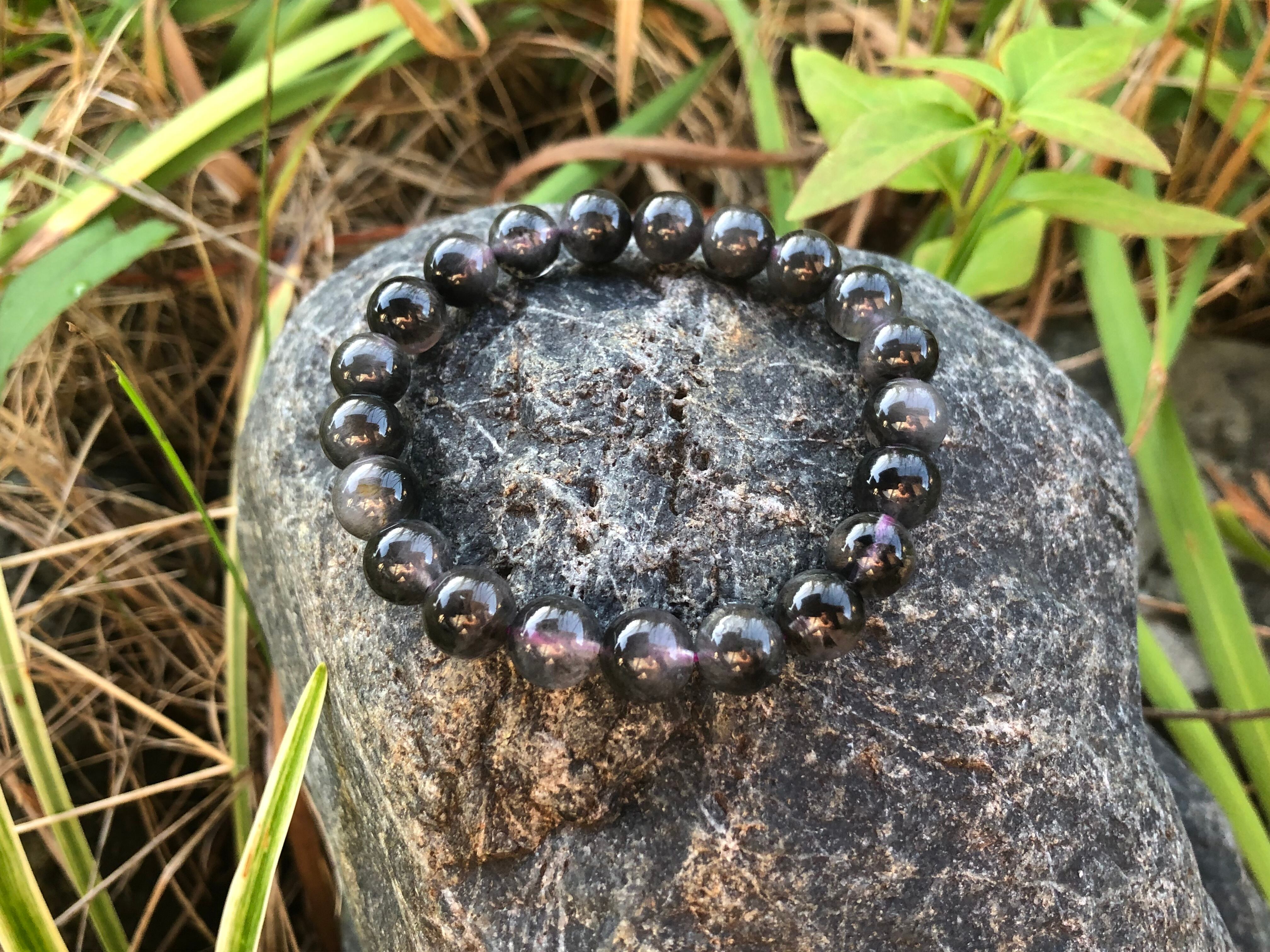 オーラライト23はアメジストをベースとした23種もの鉱物を内包する非常に希少なパワーストーンですがこちらは通常のアメジストベースよりも深みを持ち黒みを帯び、ブラックオーライト23と呼ばれるものです。普通のオーライト23よりも現実的な擦り合わせ、強く未来を踏み出してゆくのにサポートが強い石となります。