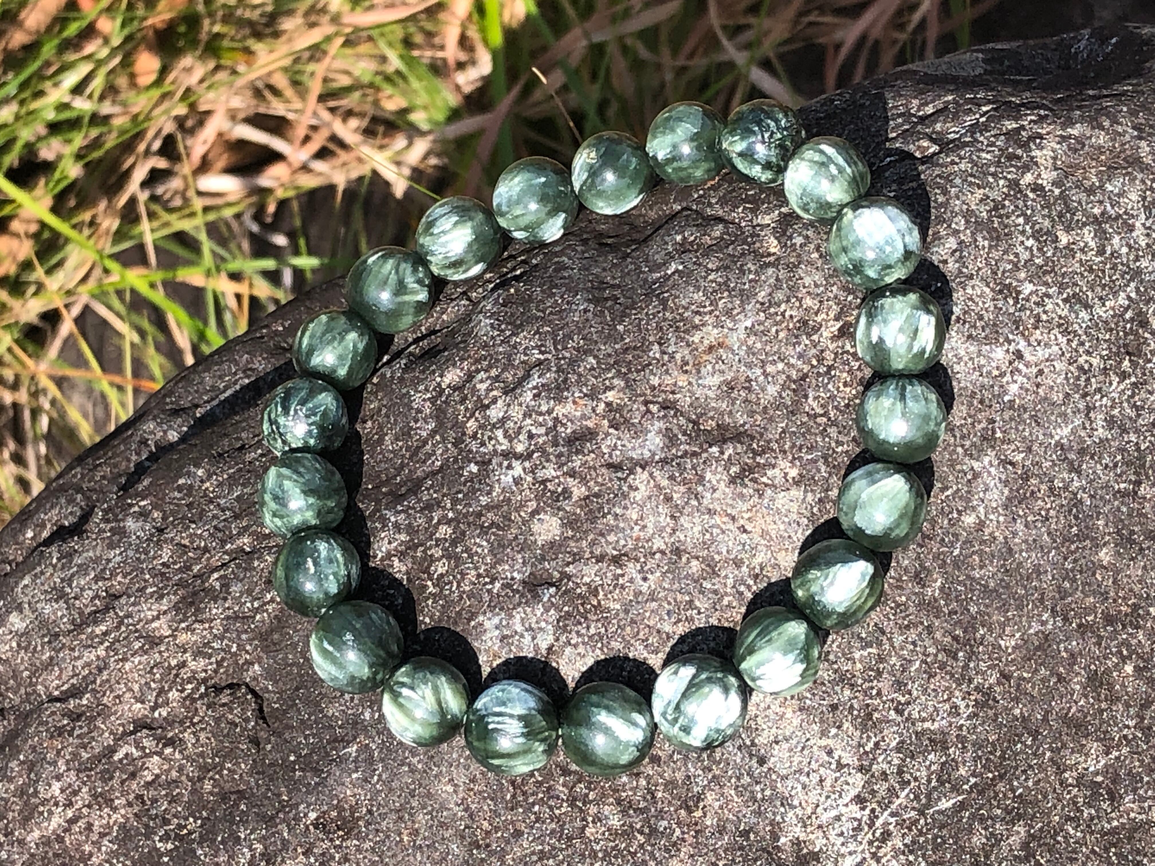 セラフィナイトの中でもとても鮮やかなグリーンと輝く光の強さを持つ極上のセラフィナイトです。