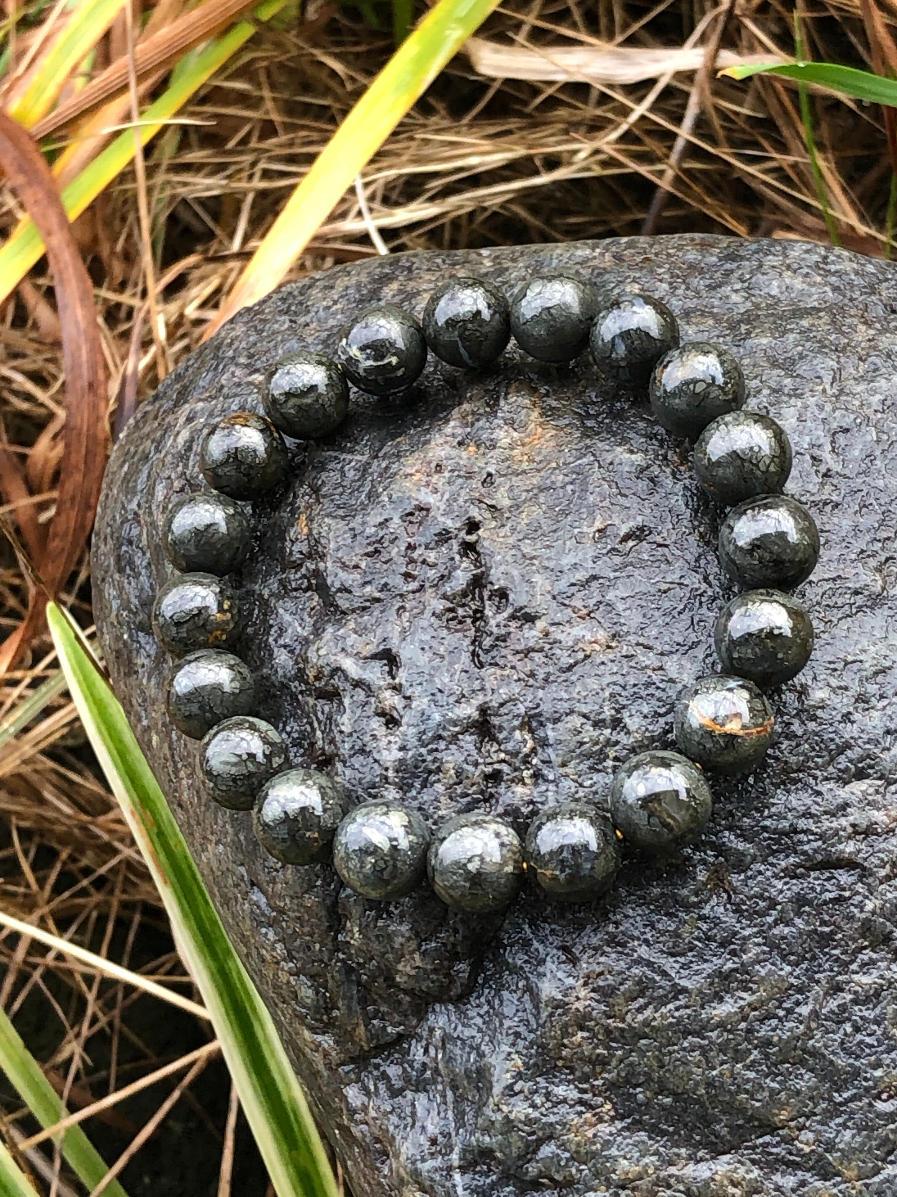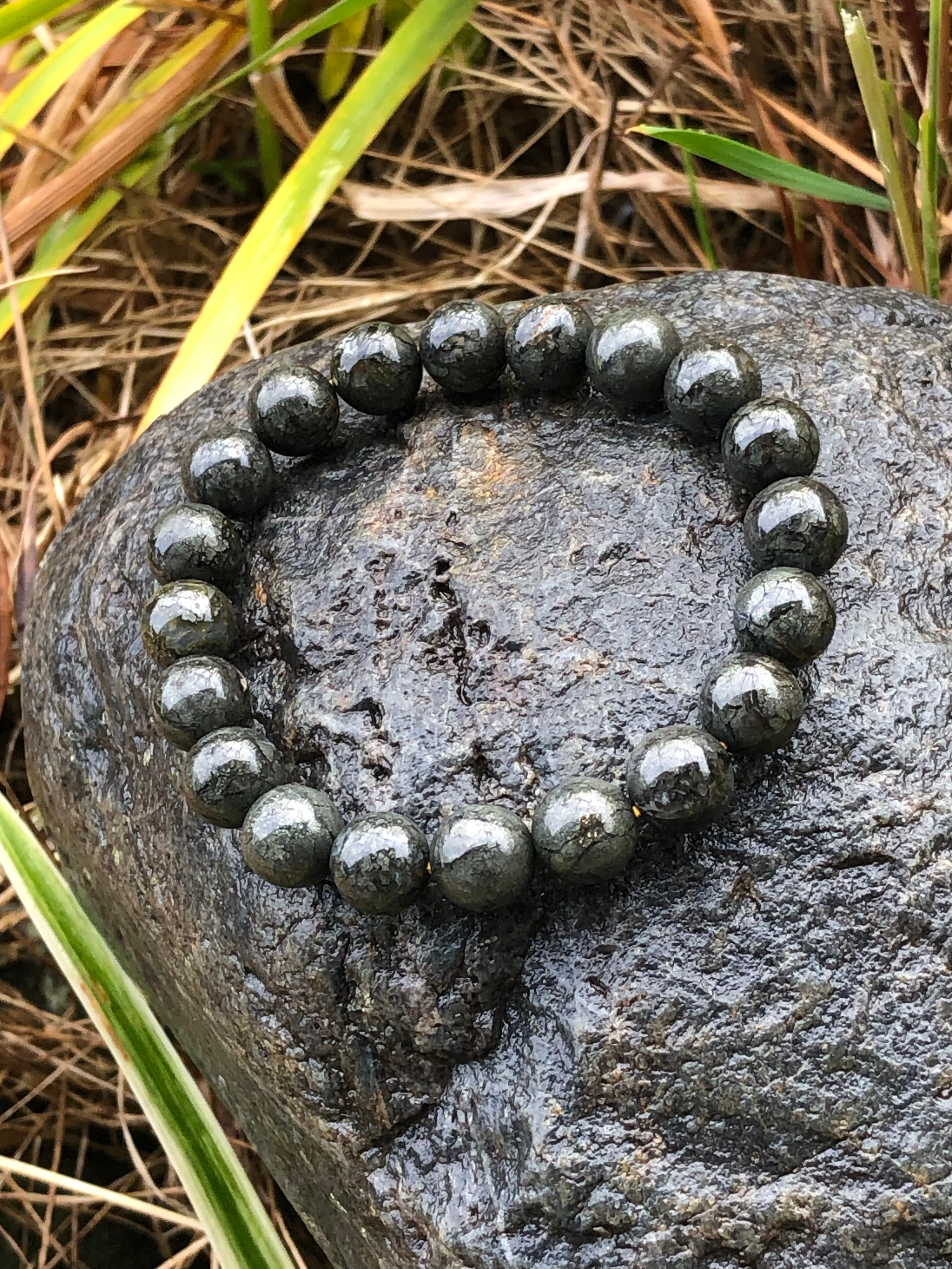 パイライトとカルセドニーが混ざり合っている珍しいタイプのパイライトと捉えていただけるとわかりやすいですがカルセドニーの微細さがプラスされており、不思議な紋様を醸し出すストーンです。 他人といると妙に疲れてしまう。他人のエネルギーまたは、邪気受けやすい方、感じてしまう方にとてもオススメですね^ ^ マイフィールド感を保つのにとても長けていて自身の個性の再構築、再確立にも貢献してくれる石ですね^ ^