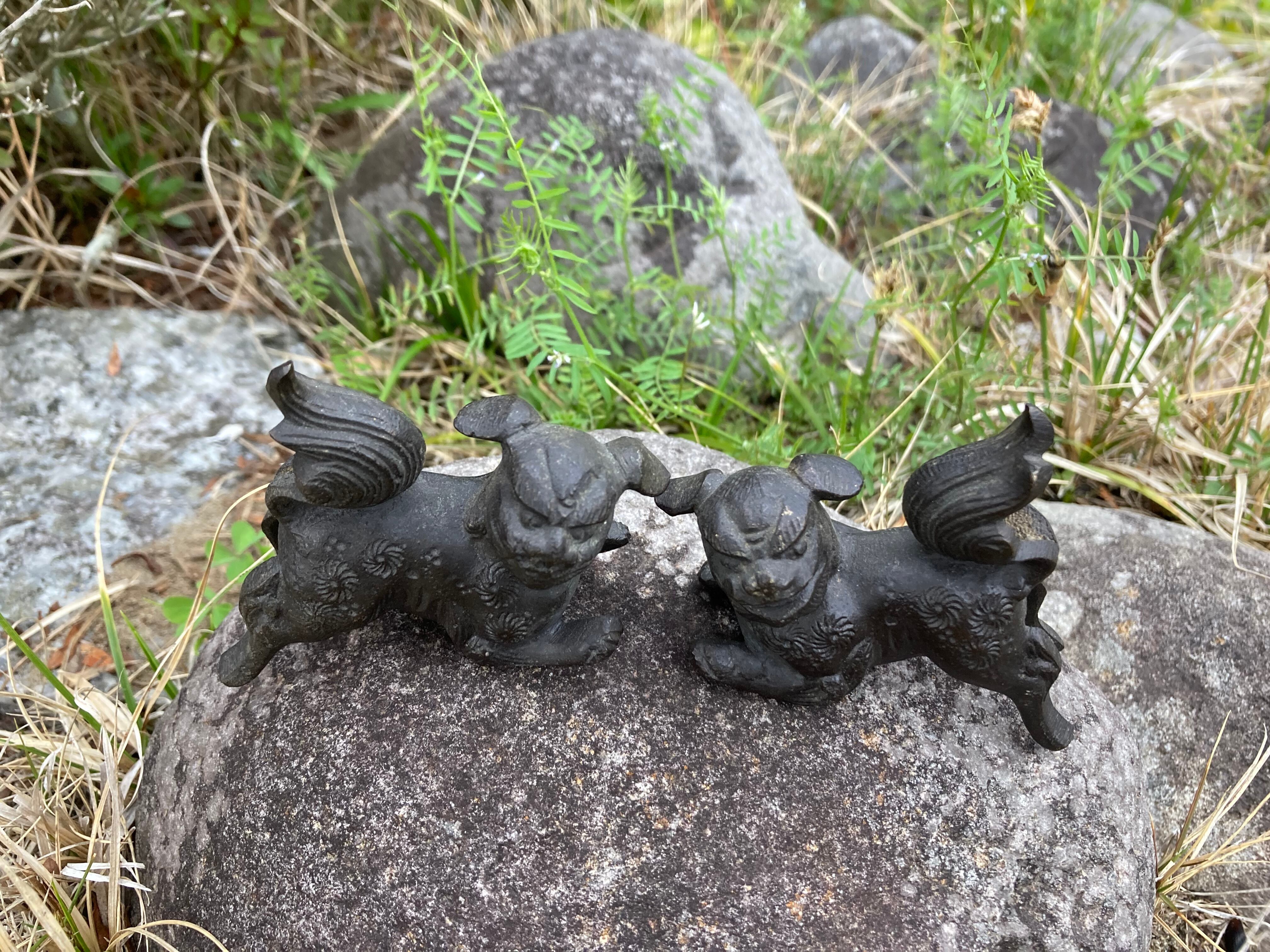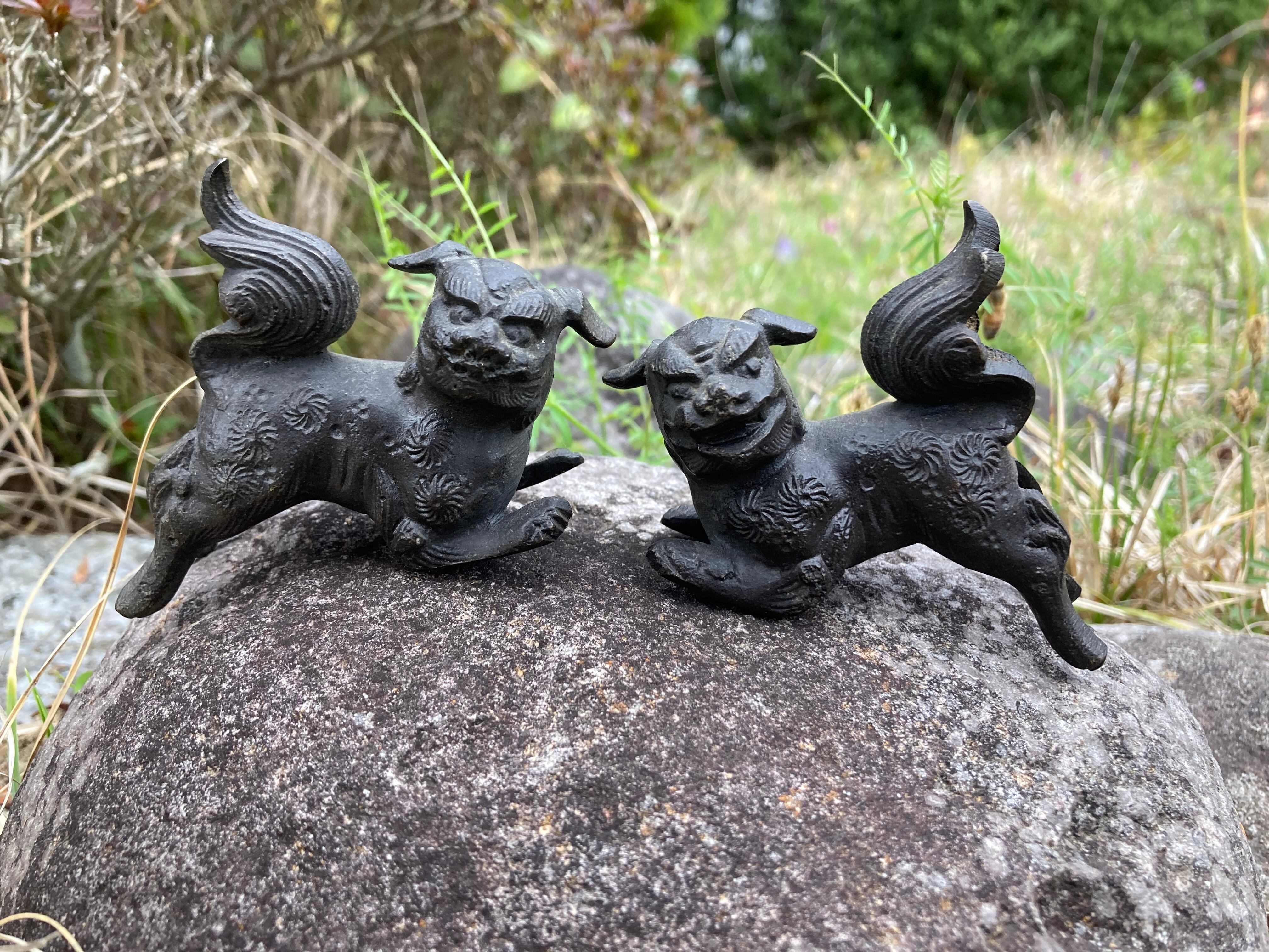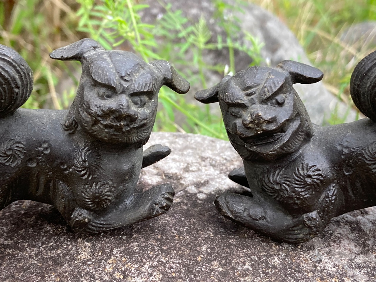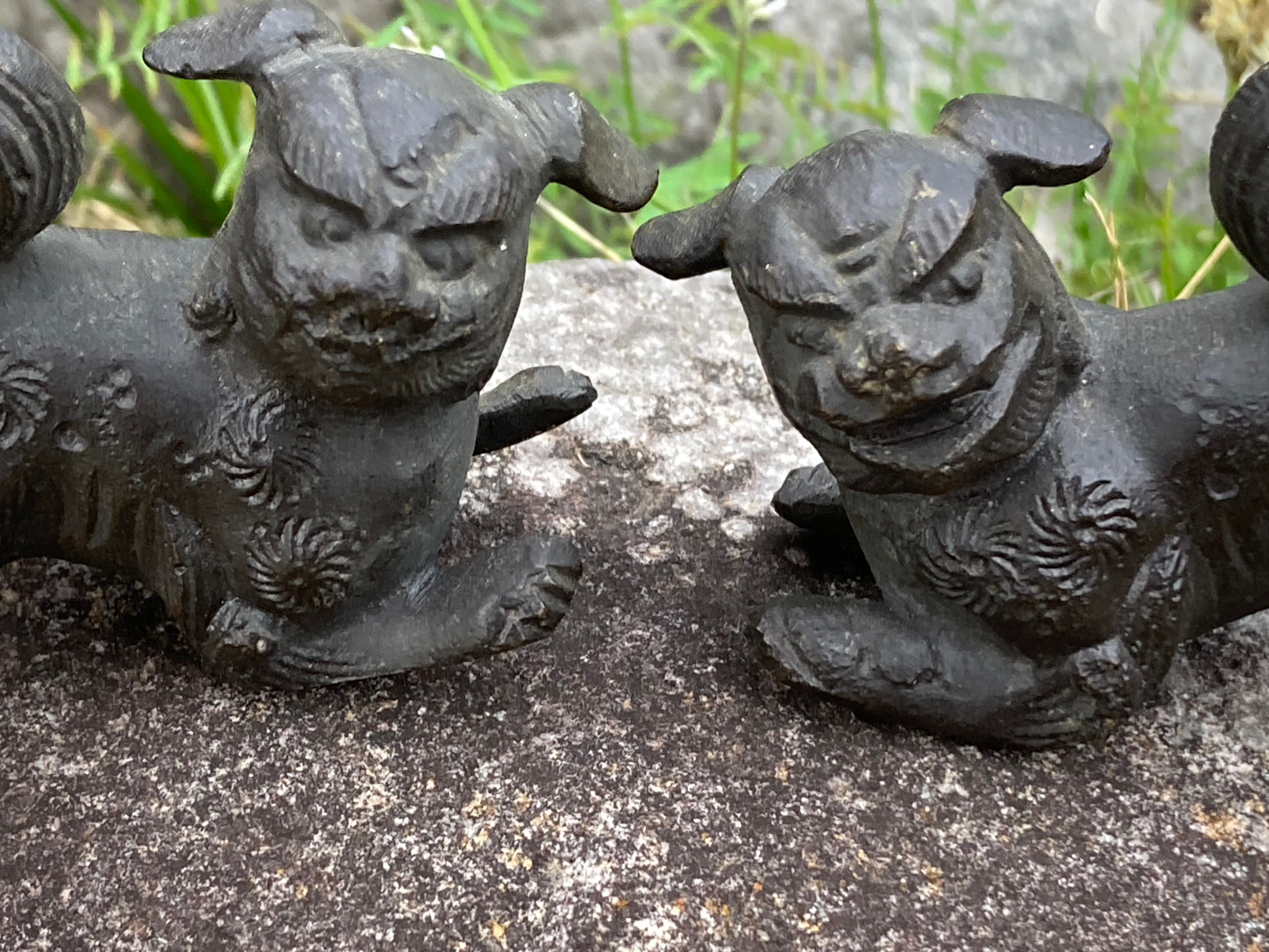 鋳物の狛犬です真鍮製と思われますが真鍮レベルが高い対の狛犬です。玄関の守りや神棚の守りとして置くものてすが、置き場がわからないなどありましたらご相談ください♪