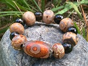 三眼天珠とは幸福や財、長寿の力を持っていて財運の向上が最も強い。二眼という二つのもの以外の目に見えない「縁」を見る目である。また三眼は成功のシンボルであり、天の時、地の利、人の和を得るものである。