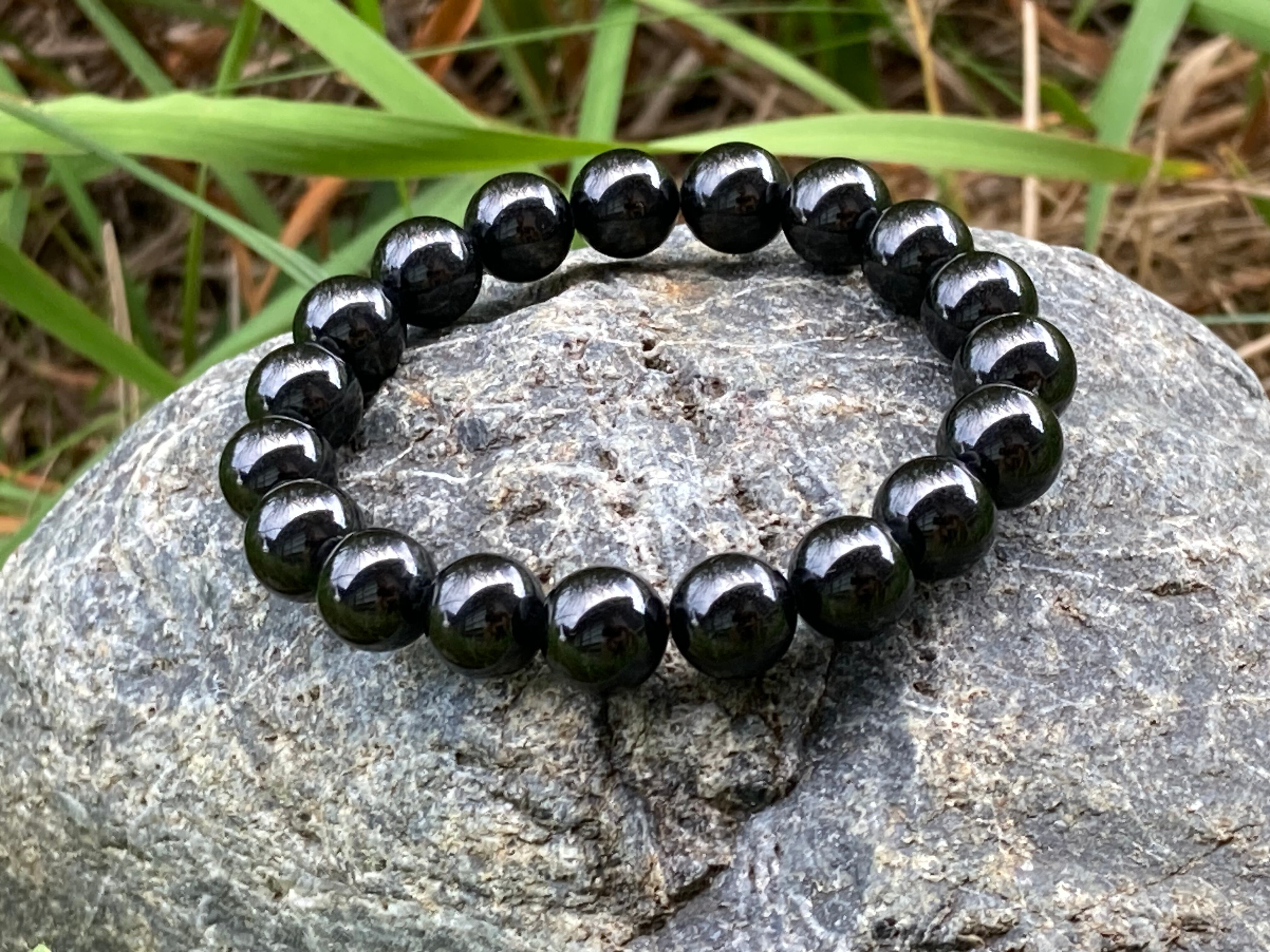 ブラックスピネルは2-3㎜程度までの小さめな結晶が見つかることが多く、カットされたものが多く丸珠の方が珍しいもので、とても素晴らしいパワーストーンとしての効果を持っているのですがその小さな結晶の為、あまりパワーストーン業界でもその真価について触れられていない石でもあり、このサイズ感なら高次石と呼んでも過言はない石です。