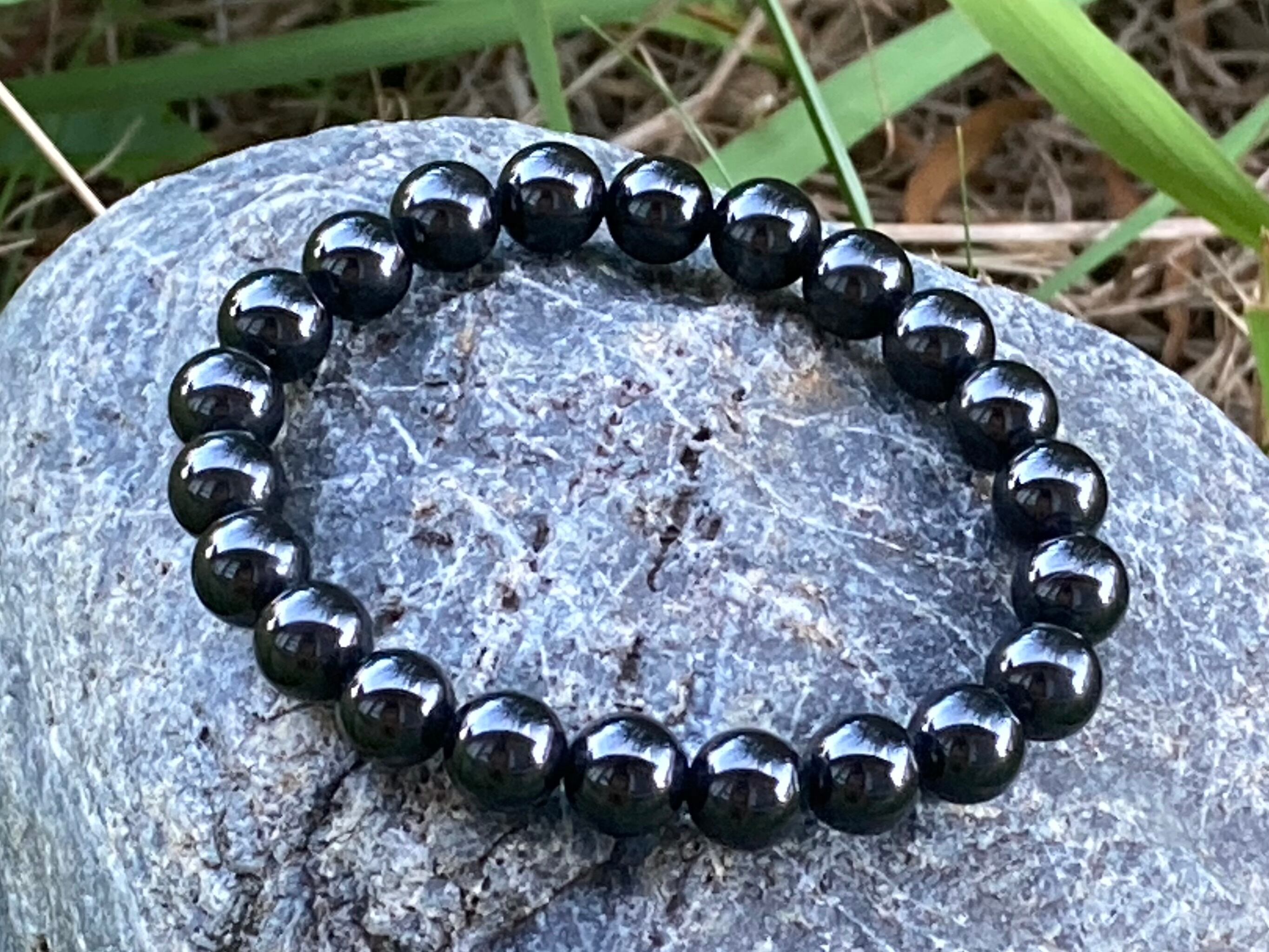 ブラックスピネルは2-3㎜程度までの小さめな結晶が見つかることが多く、カットされたものが多く丸珠の方が珍しいもので、とても素晴らしいパワーストーンとしての効果を持っているのですがその小さな結晶の為、あまりパワーストーン業界でもその真価について触れられていない石でもあり、このサイズ感なら高次石と呼んでも過言はない石です。